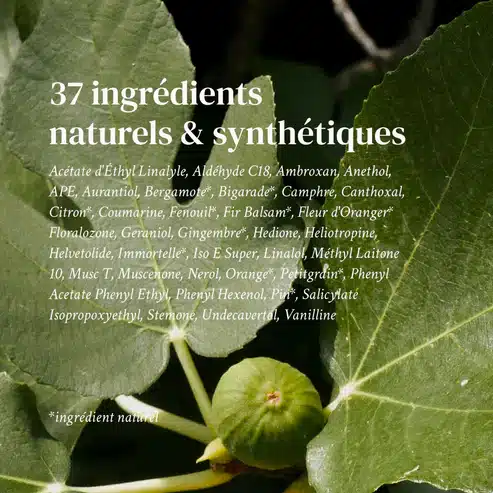 - Parfum – Fragrance (Grasse) : L’appellation qui regroupe tout mais qui ne se dévoile jamais ! Ce parfum contient 37 ingrédients naturels (🌱) et synthétiques (🔬)