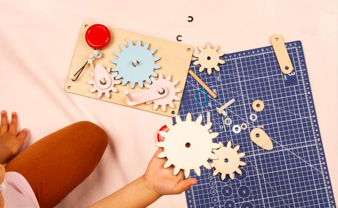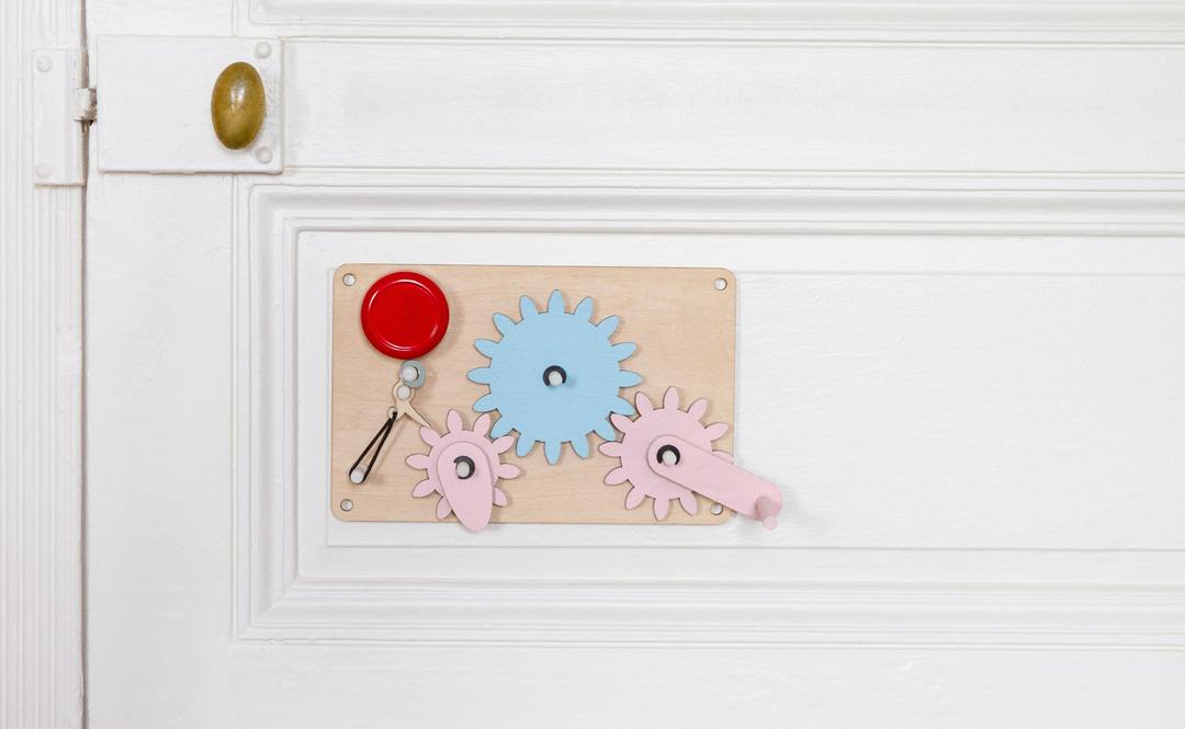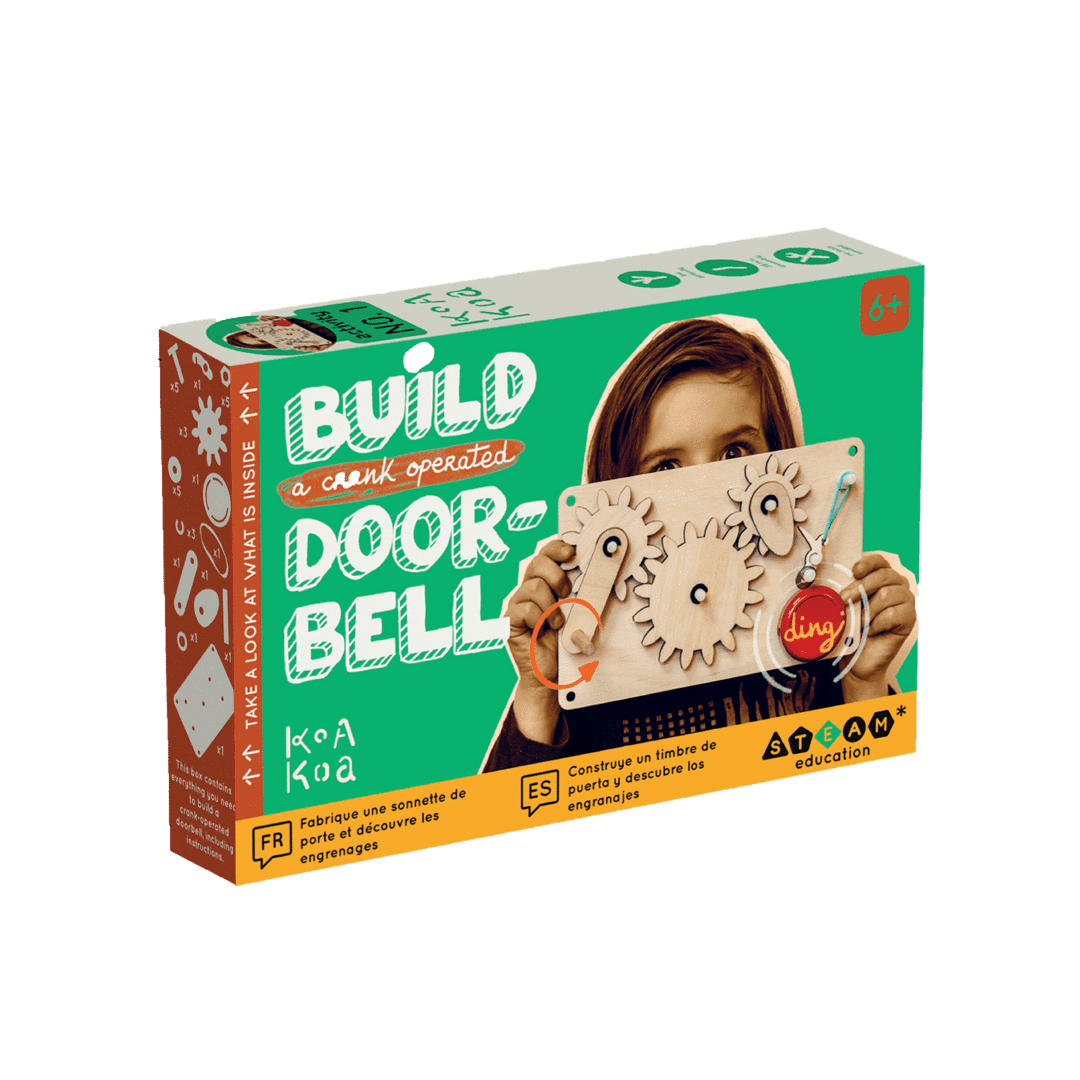 Commence par détacher les engrenages des planches en bois, puis identifie bien toutes les petites pièces et la visserie. Une fois montée, tu peux la peindre pour la personnaliser et la clouer à la porte de ta chambre (il y a 4 trous sur les côtés destinés à cet effet). Ensuite, plus question de rentrer sans sonner !