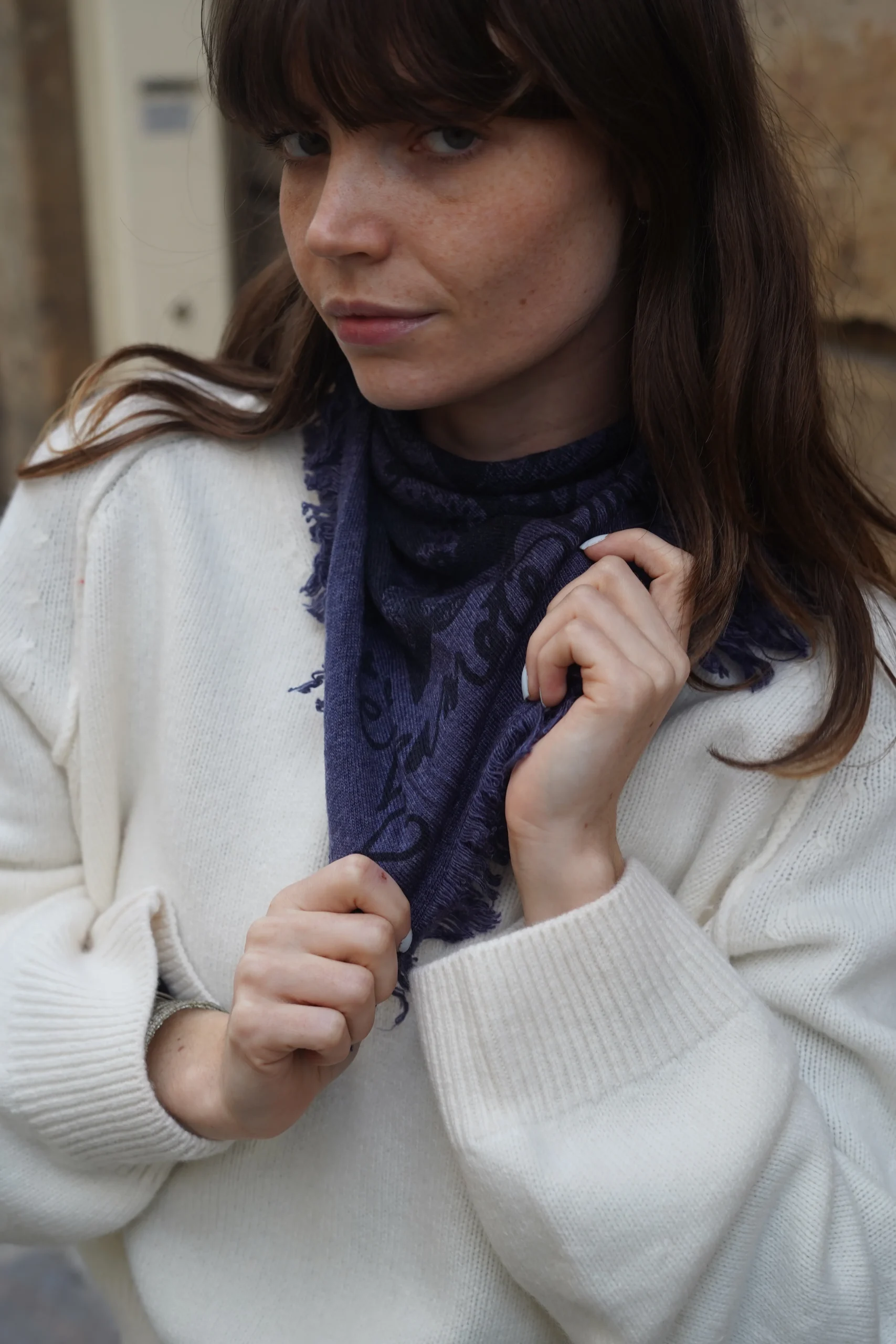 Le Foulard Bandana Leia Coeur Denim est proposé dans une variété de coloris riches et contrastés, conçus pour s’harmoniser avec toutes vos émotions et toutes vos silhouettes : le coloris Rose Écru, particulièrement doux, s’inscrit aux côtés du bleu denim profond, du rouge corail, du gris chiné, du carbone ou de l’Azul en version Chats.