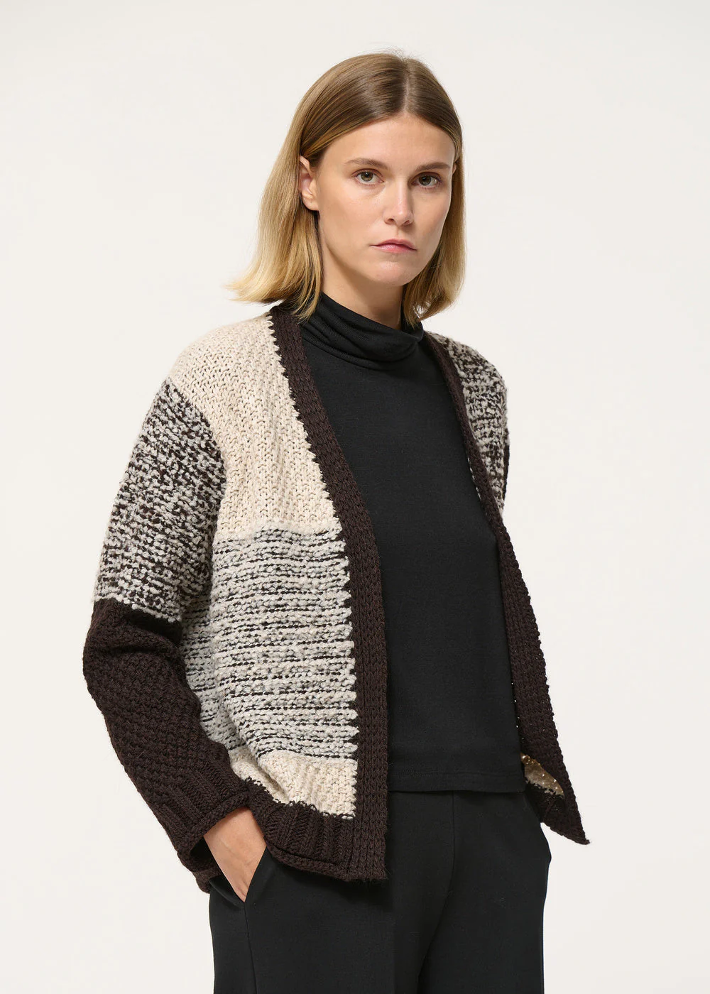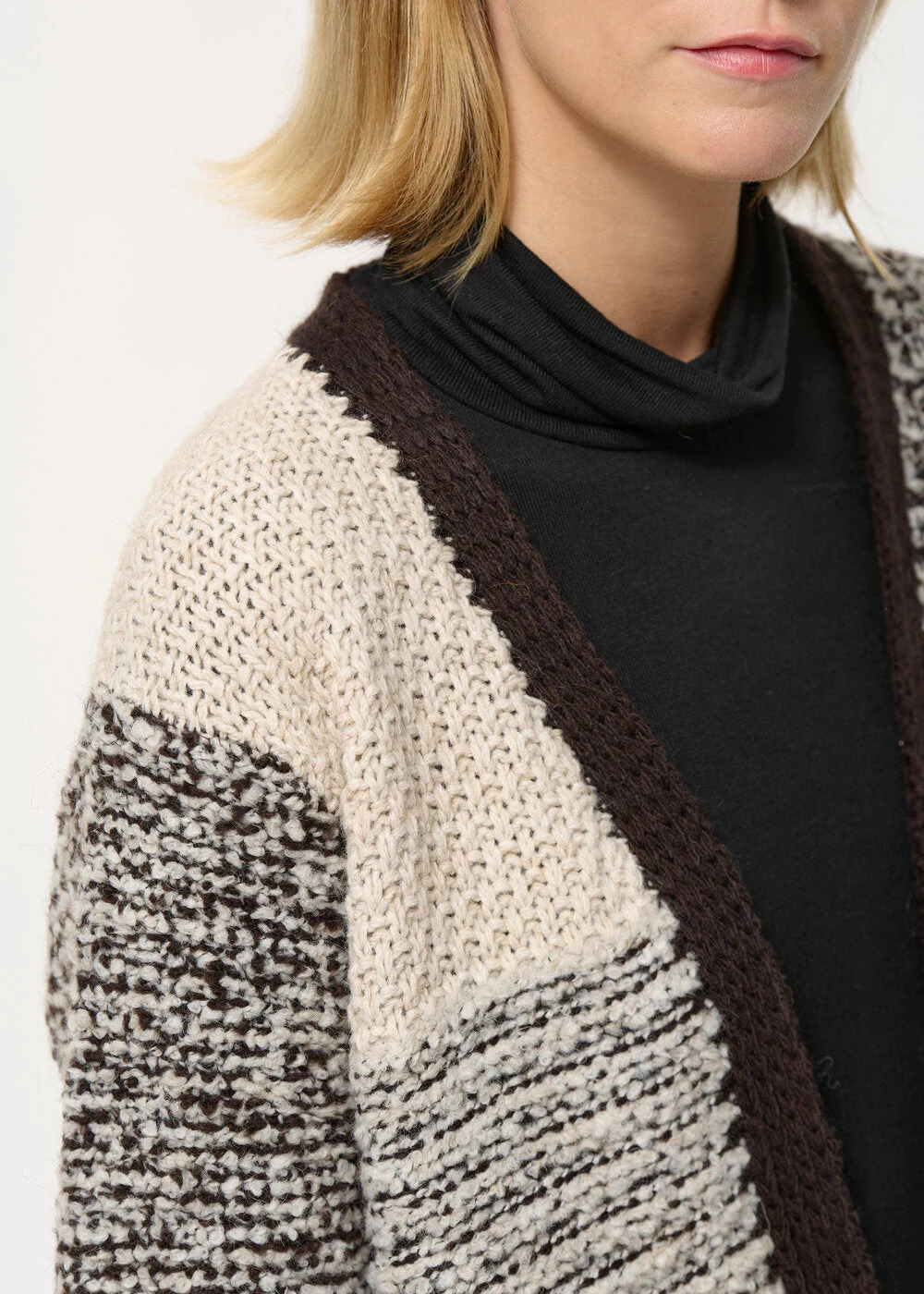 – Finitions col, bas de manches et de corps en bord-côtes roulottés