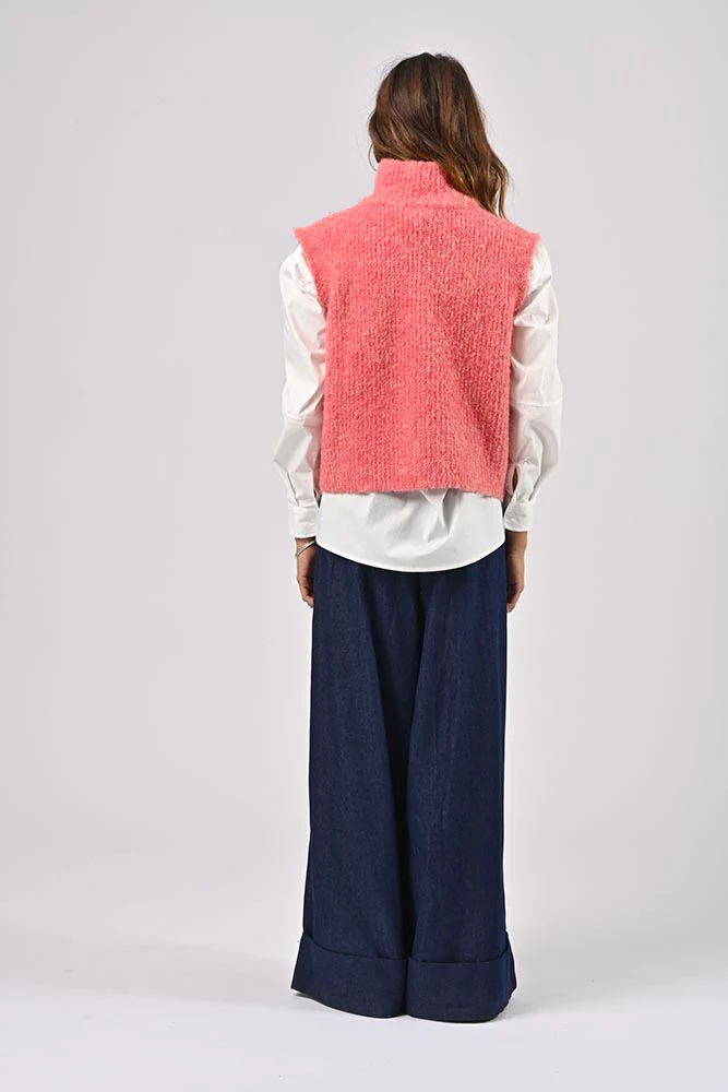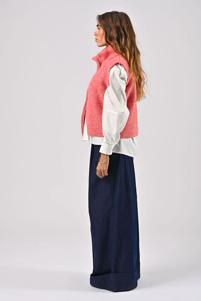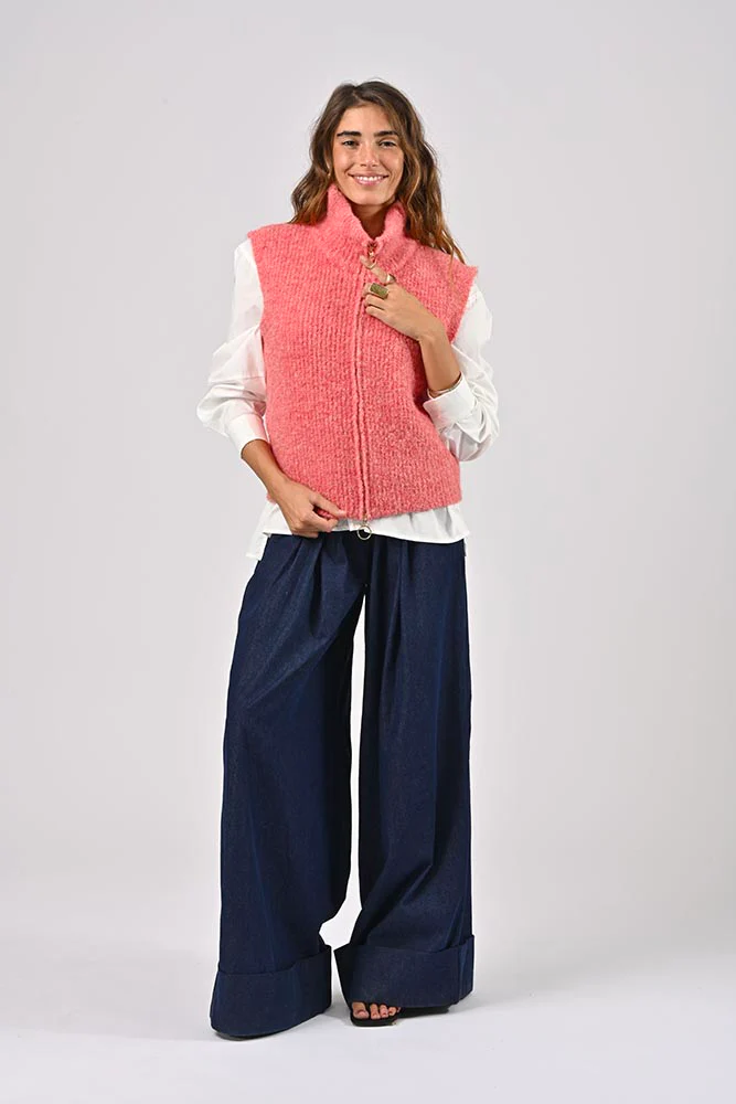 Le gilet sans manches Lodie allie élégance et confort avec sa couleur orange vibrante, parfaite pour ajouter une touche dynamique à votre tenue. Conçu en maille, ce gilet arbore un col montant et une fermeture à zip dorée pour un style raffiné.