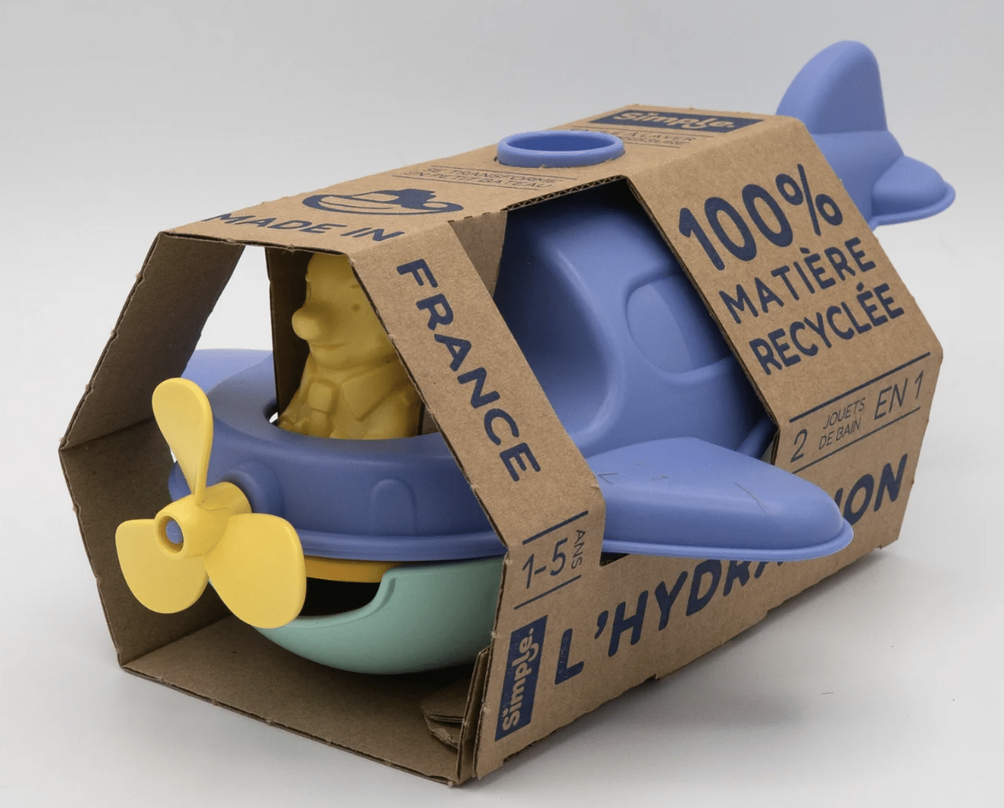 L’hydravion avec un bateau à l’intérieur. Un jouet de construction et d’emboîtement avec son système d’encastrement de 3 coques. Conçu pour jouer partout, dans le bain à l’intérieur et à l’extérieur. Muni d’une hélice qui tourne à toute vitesse et de son pilote Renard, l’hydravion est paré à toutes les aventures.