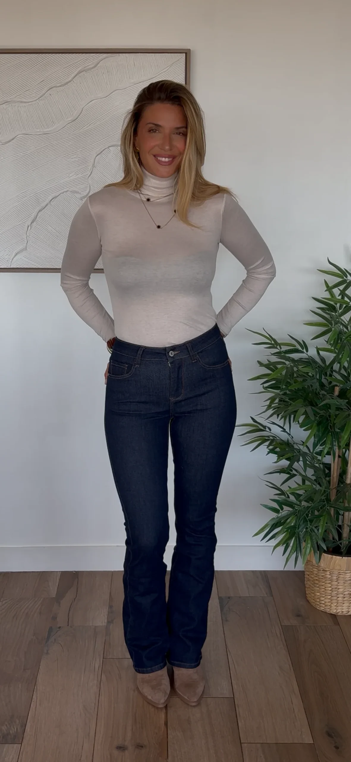 Ce jean Emma se distingue par sa coupe flare qui s’évase élégamment à partir du genou, créant une silhouette allongée et féminine. Sa taille mi-haute met en valeur votre taille tout en offrant un maintien parfait. La composition avec élasthanne vous assure liberté de mouvement et confort toute la journée.