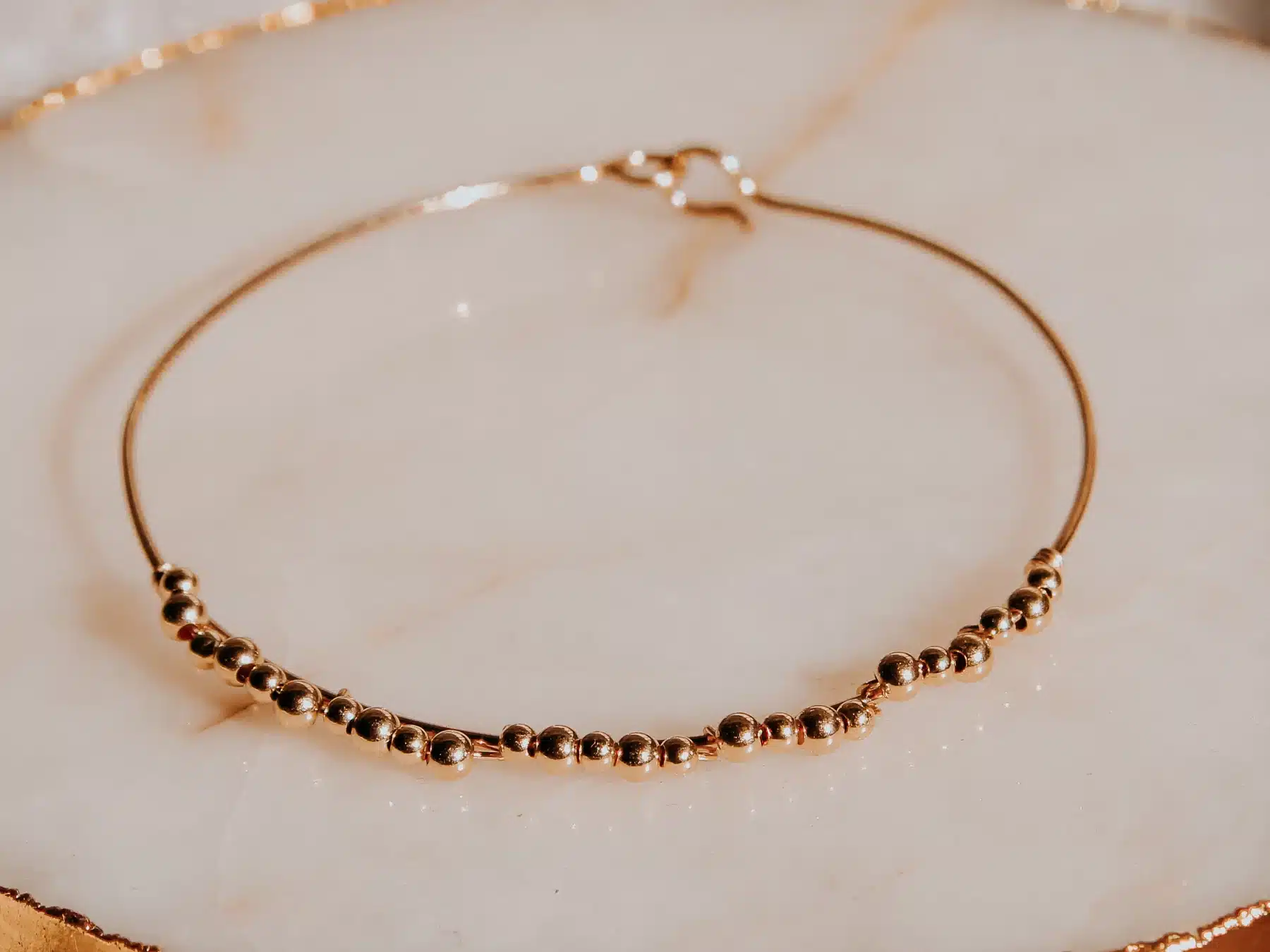Jonc en gold filled et fermoir crochet, composé de petites perles gold filled en 2 et 3 mm.