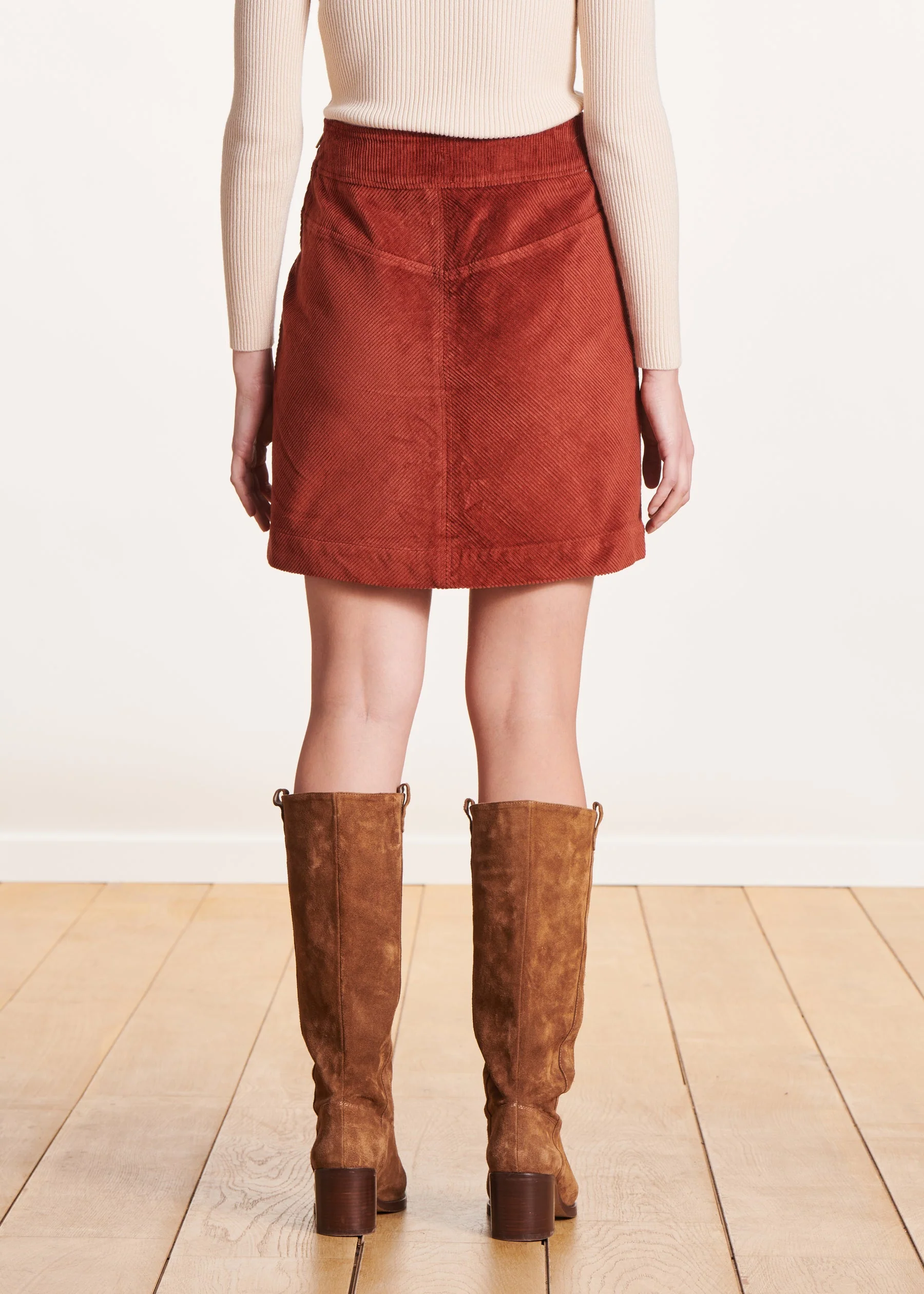 – Jupe courte en velours côtelé