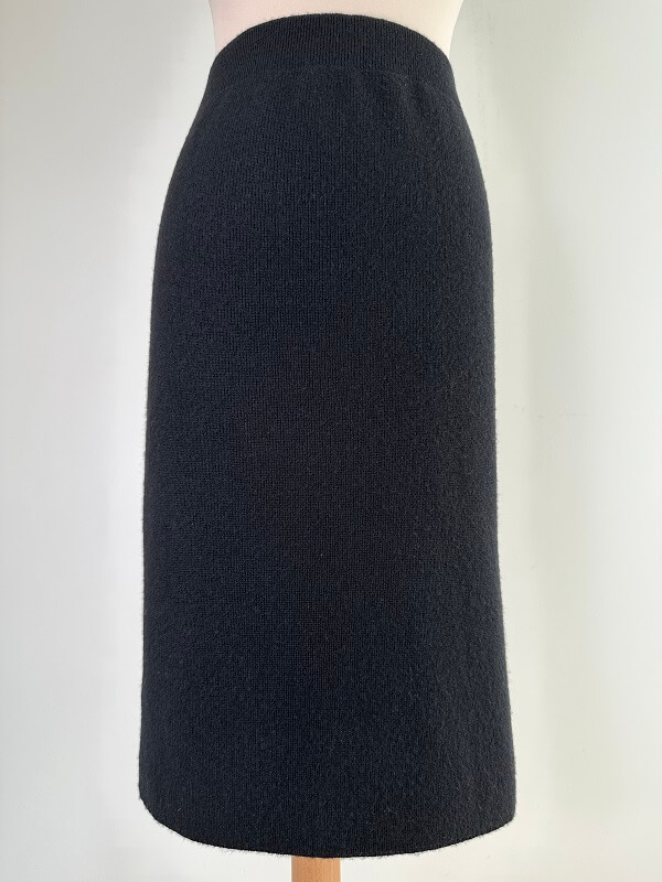 Jupe crayon en maille côtelée noire mi-longue 100% laine mérinos