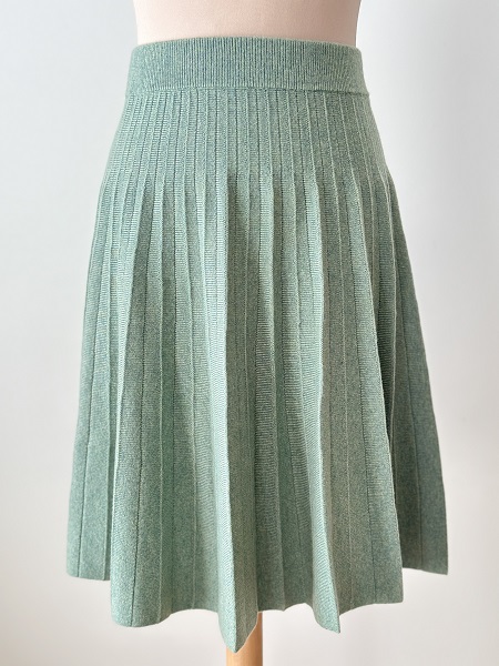 Jupe en laine et cachemire mi-longue effet plissée vert céladon