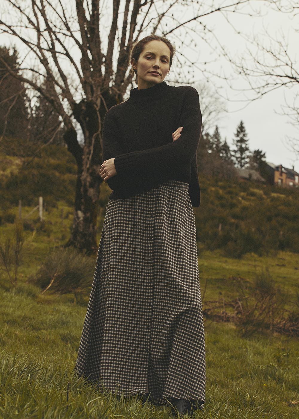 Soyez le premier à laisser votre avis sur “Jupe longue marron évasée à carreaux vichy”