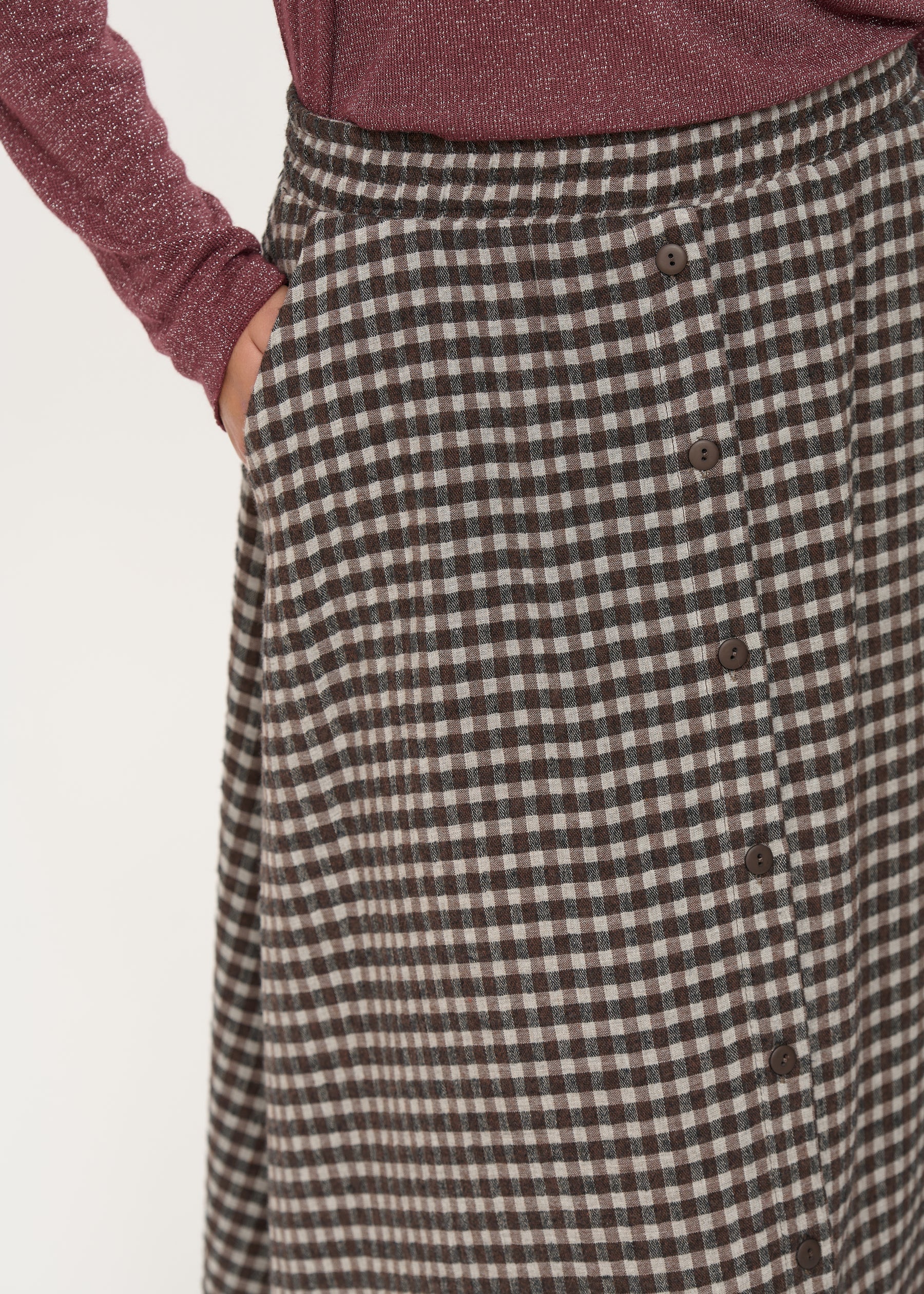 – Jupe longue à carreaux vichy gaufrés