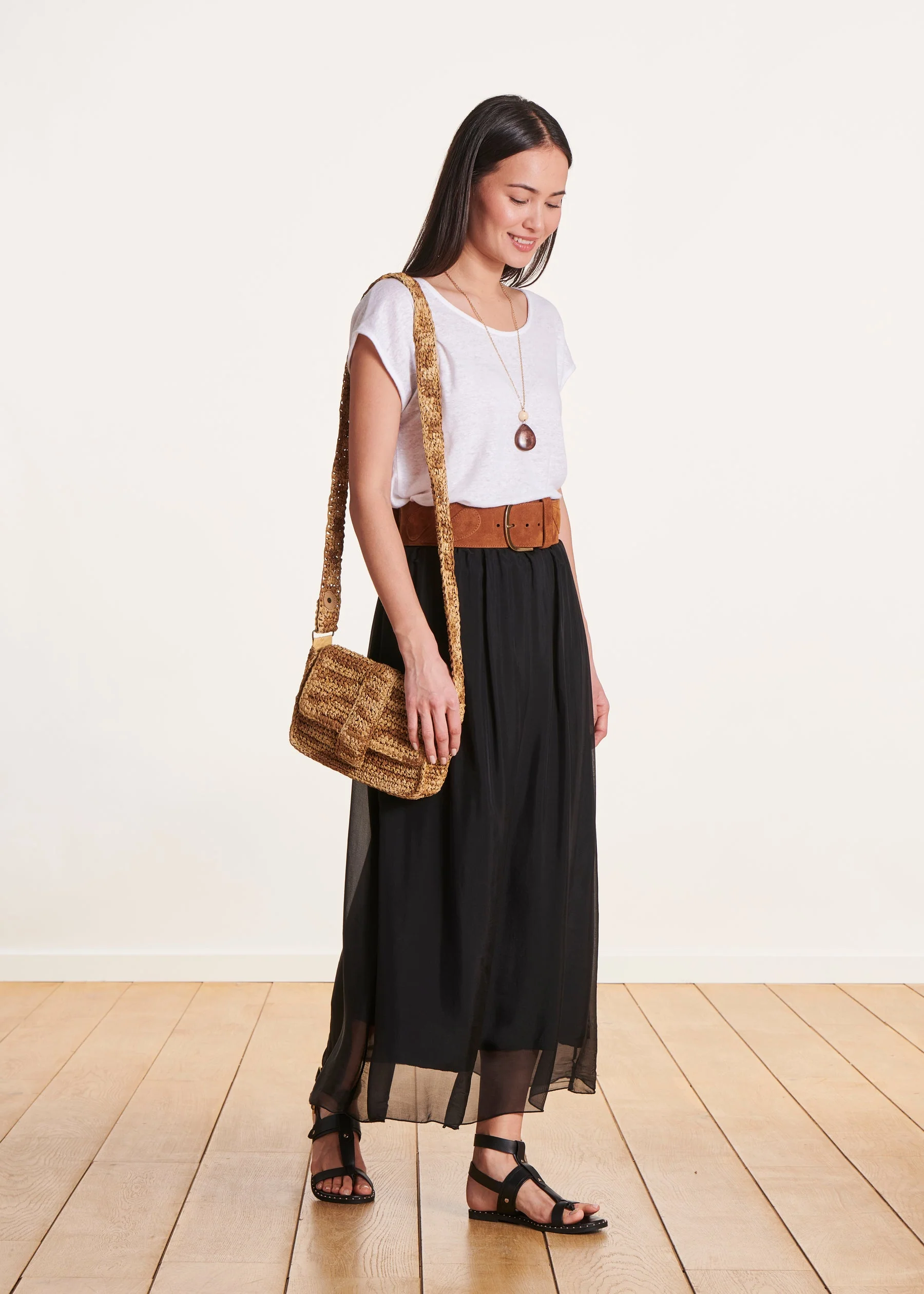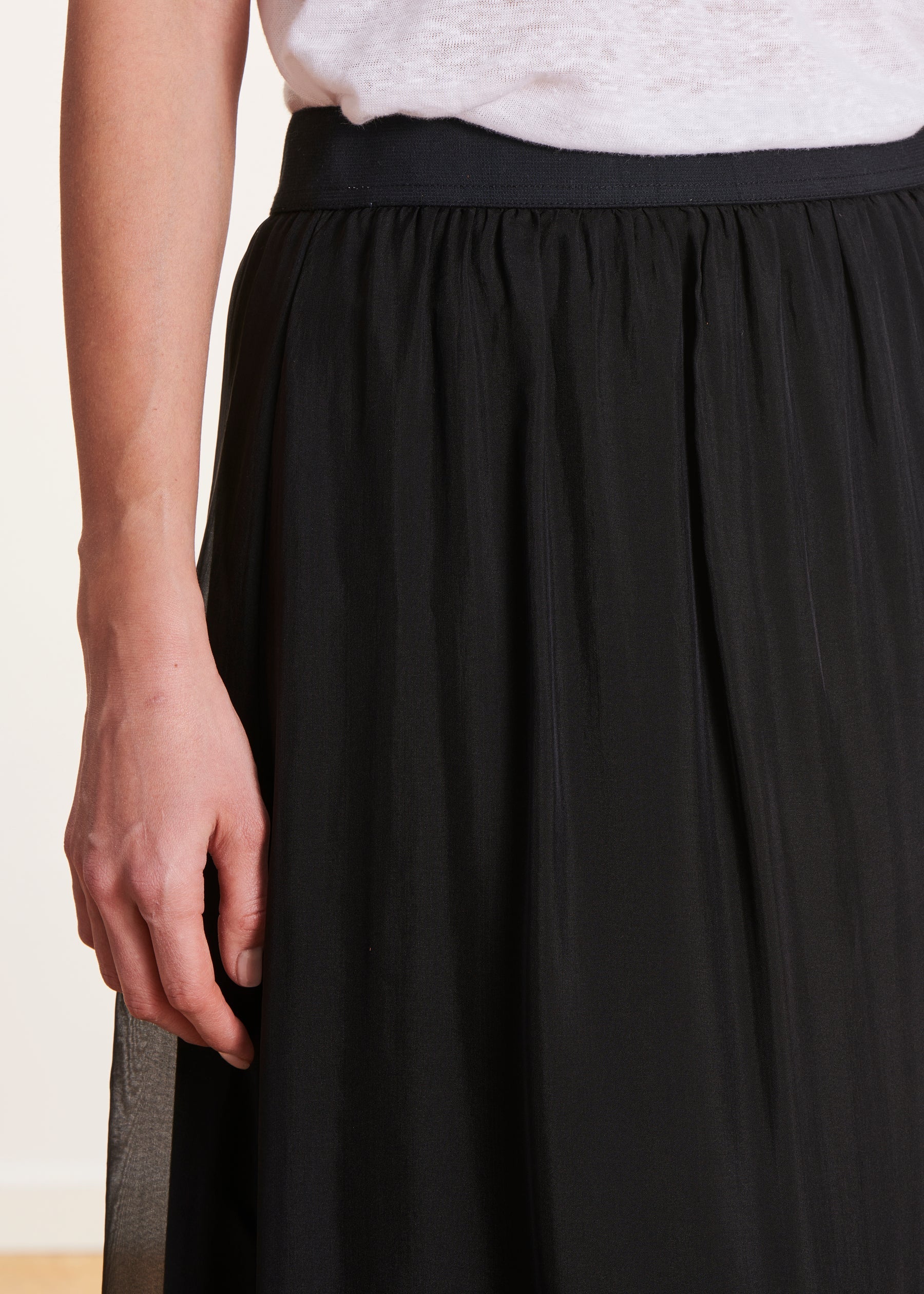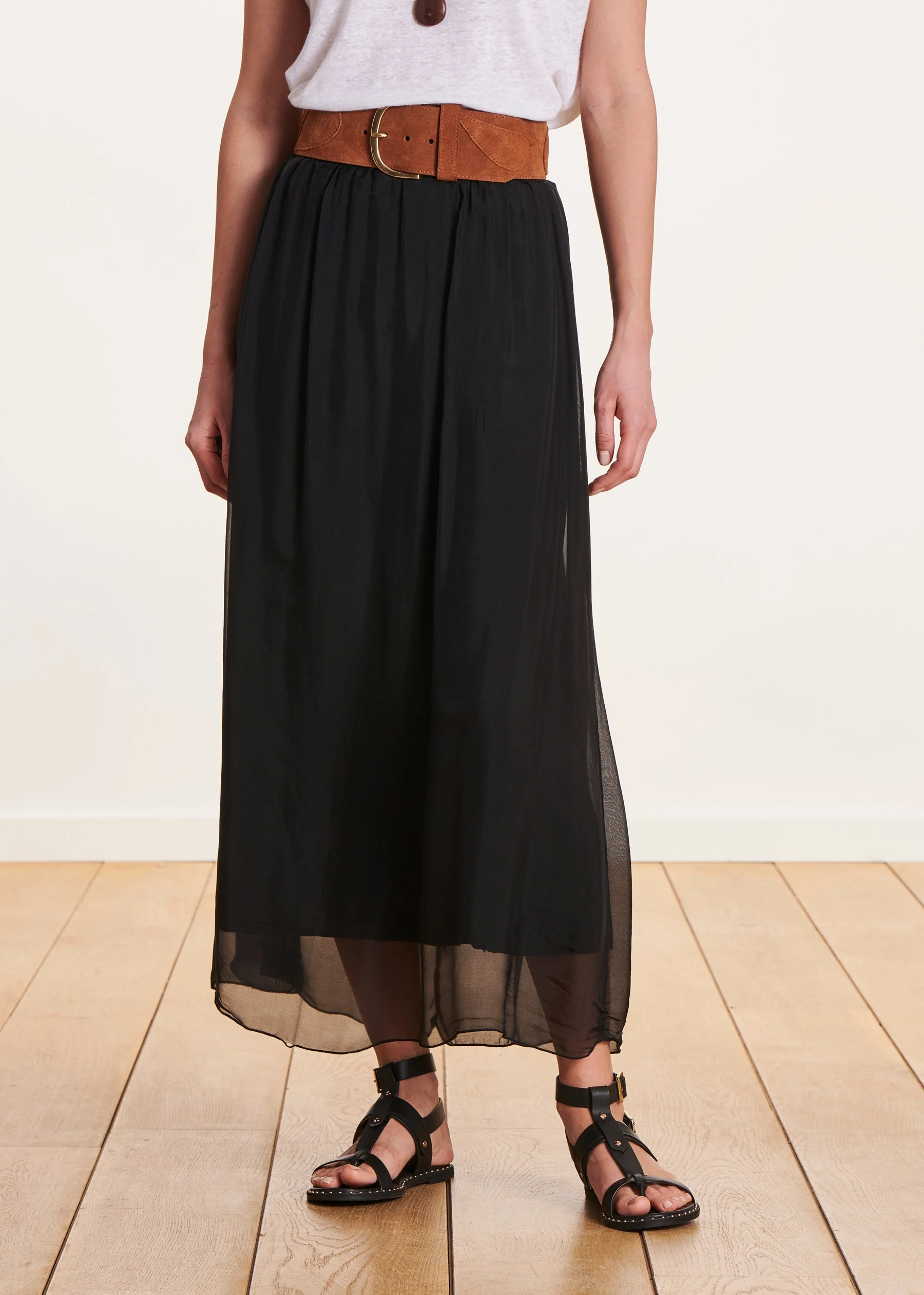 – Jupe longue fluide en voile de viscose/soie