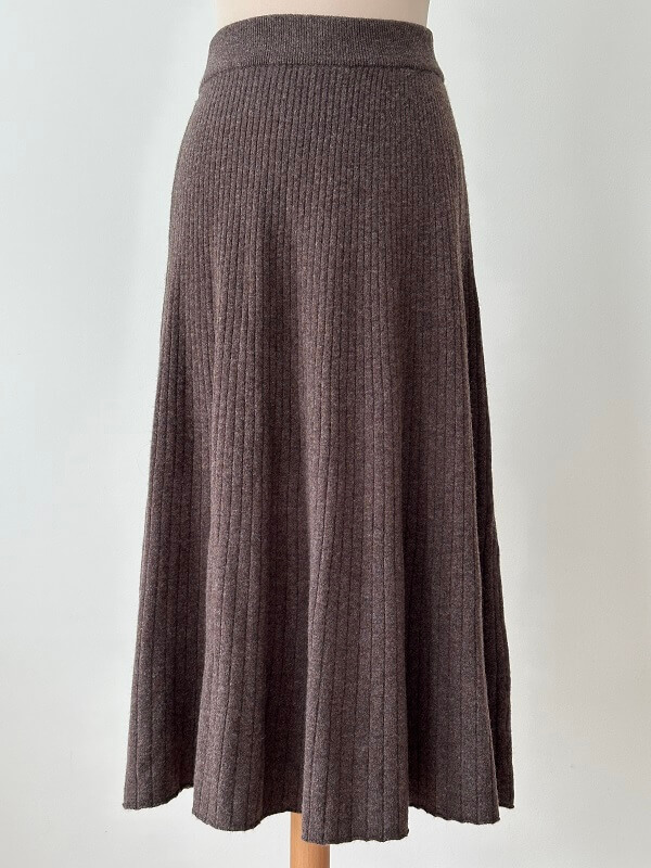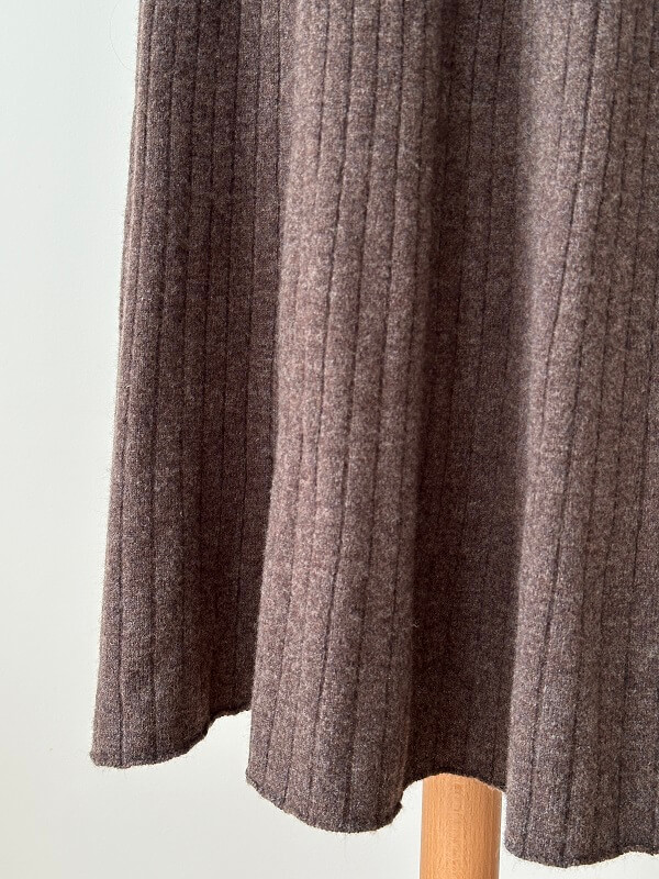 Jupe plissée marron longue en maille de laine 100% – Deva