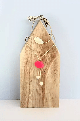 Retrouvez également dans ce kit de la feutrine 100% pure laine vierge certifiée oekotex pour fabriquer des pompons, mais aussi des perles de bois du jura, du ruban Liberty Of London, deux supports de bague et un magnifique cordon élastique doré fabriqué en Haute Loire.