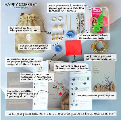 Craquez pour ce coffret complet qui vous permettra de réaliser plus de 10 bijoux ! Le kit parfait pour une ou plusieurs petites (et grandes:)) filles !