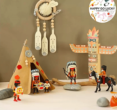 Voilà un kit que nos petits Sioux vont adorer ! Accessible dès 5-6 ans, Happy go lucky vous présente le dernier né : le kit pour créer son tipi d’indiens en papier lavable et son totem à colorier !