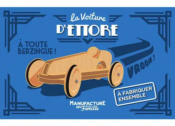 La voiture d’ETTORE, une voiture de course retro, sobre et élégante, plongera votre enfant dans l’univers des grands prix et de la performance.
