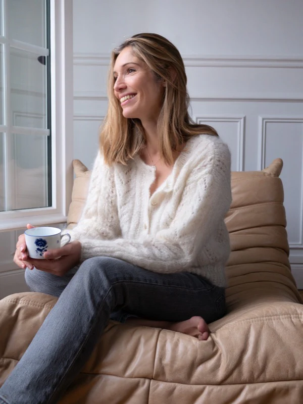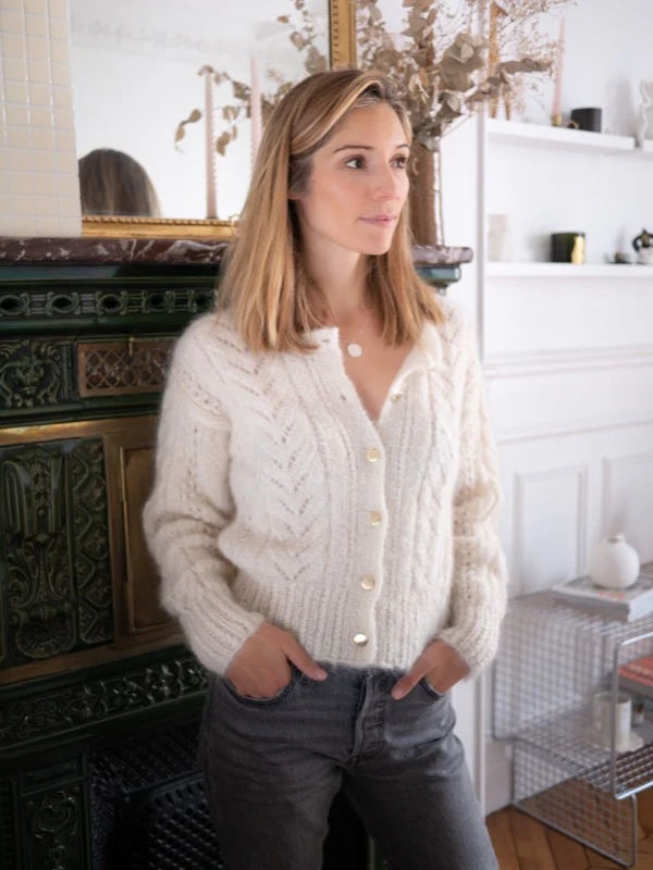 Notre gilet Lucie en 100% mohair est parfait pour passer l’hiver au chaud avec style.