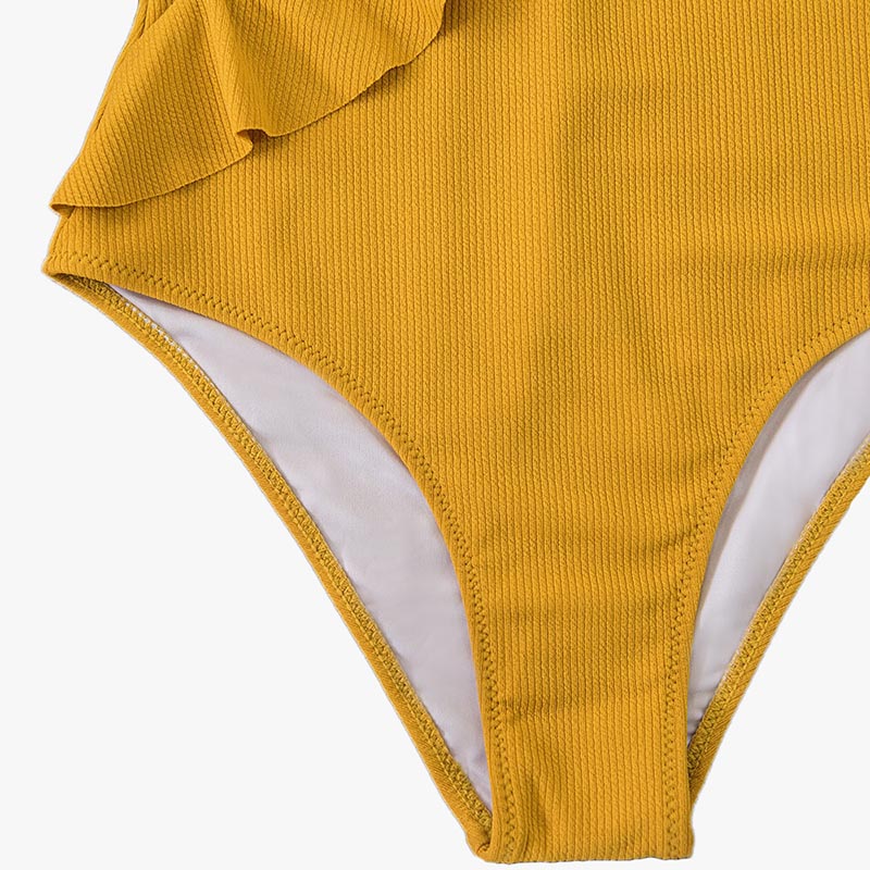 Très joli maillot de bain 1 pièce côtelé Shanna en maille extensible. Succombez au charme de ce modèle en maille texturée. Une ligne élégante et épurée aux détails raffinés, pour un style bohème chic absolument irrésistible. Dépourvus d’armatures, les bonnets à coques en mousse amovibles épousent délicatement la poitrine pour un galbe naturellement rond et un décolleté en V très sexy. Le croisement au niveau du décolleté produit un effet cache-cœur irrésistible. De délicieux volants du décolleté jusqu’à la taille virevoltent au gré du vent créant une incroyable sensation de légèreté