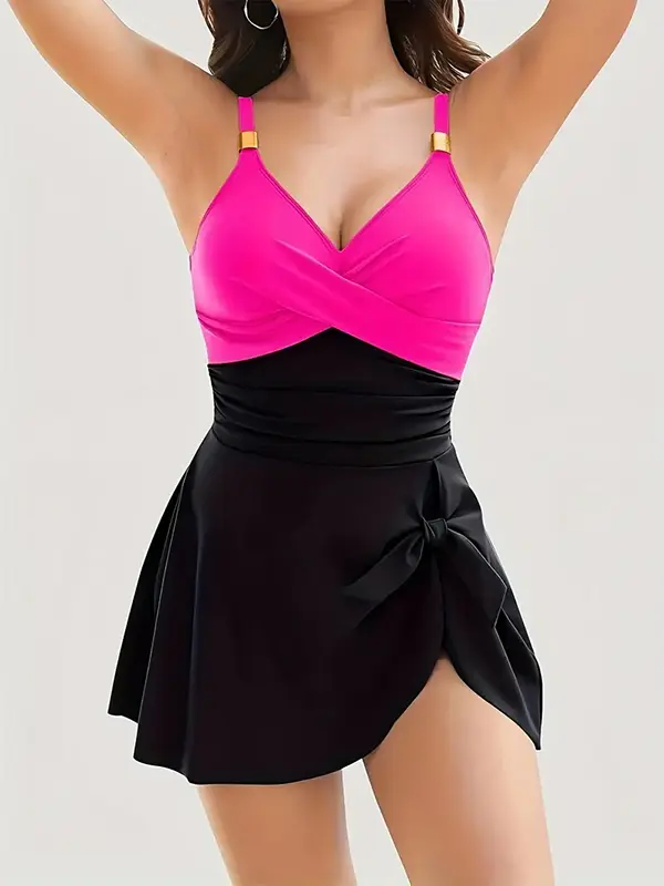 Maillot de Bain Jupette Gainant Cache-Cœur Bicolore SAMIRA