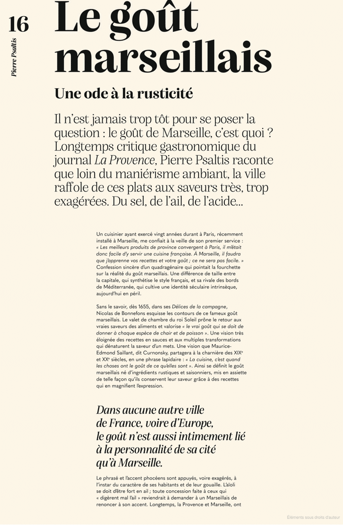 Des reportages sur les lieux culinaires emblématiques et les portaits de ceux qui ont fait, font, et feront la food à Marseille.