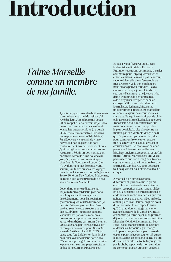 Un livre de Zerah Ezéchiel, ex-rédacteur en chef des pages gastronomie de l’Express, est un amoureux de Marseille, nouvelle capitale gastronomique. Adresses, recettes, chefs, anecdotes… Il sait déjà ce qu’il faudra manger demain et nous livre ici le meilleur de sa ville.