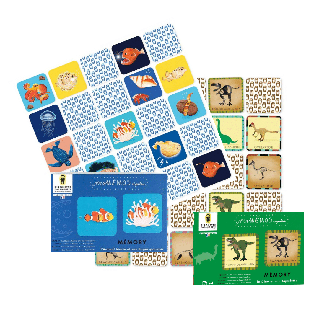 Un jeu de mémory original où les paires ne sont pas identiques. ici la paire rassemble l’animal et son super-pouvoir.