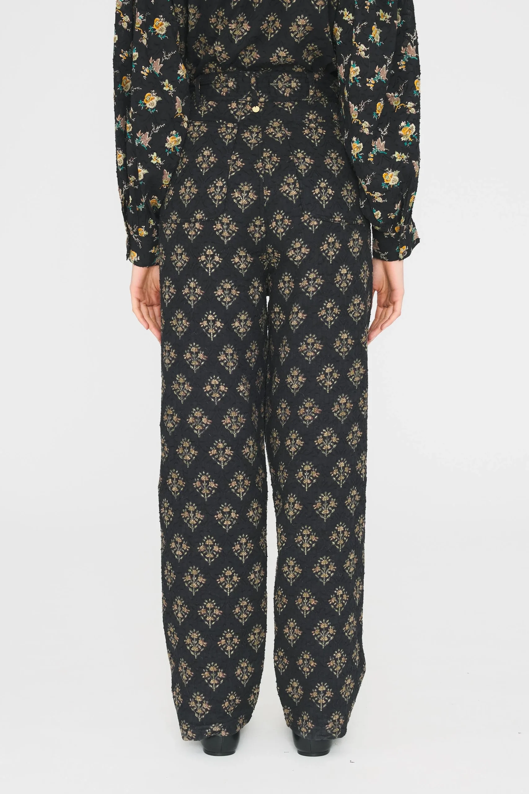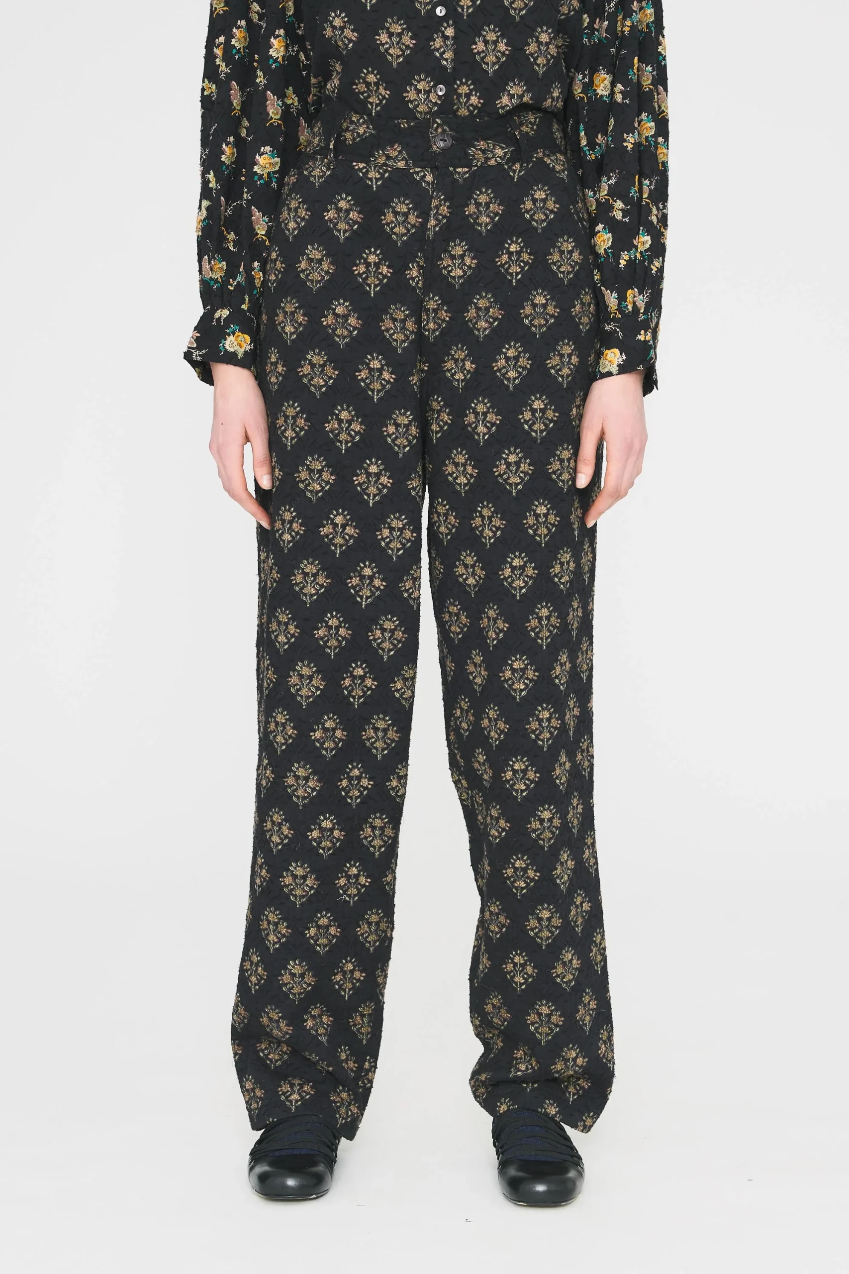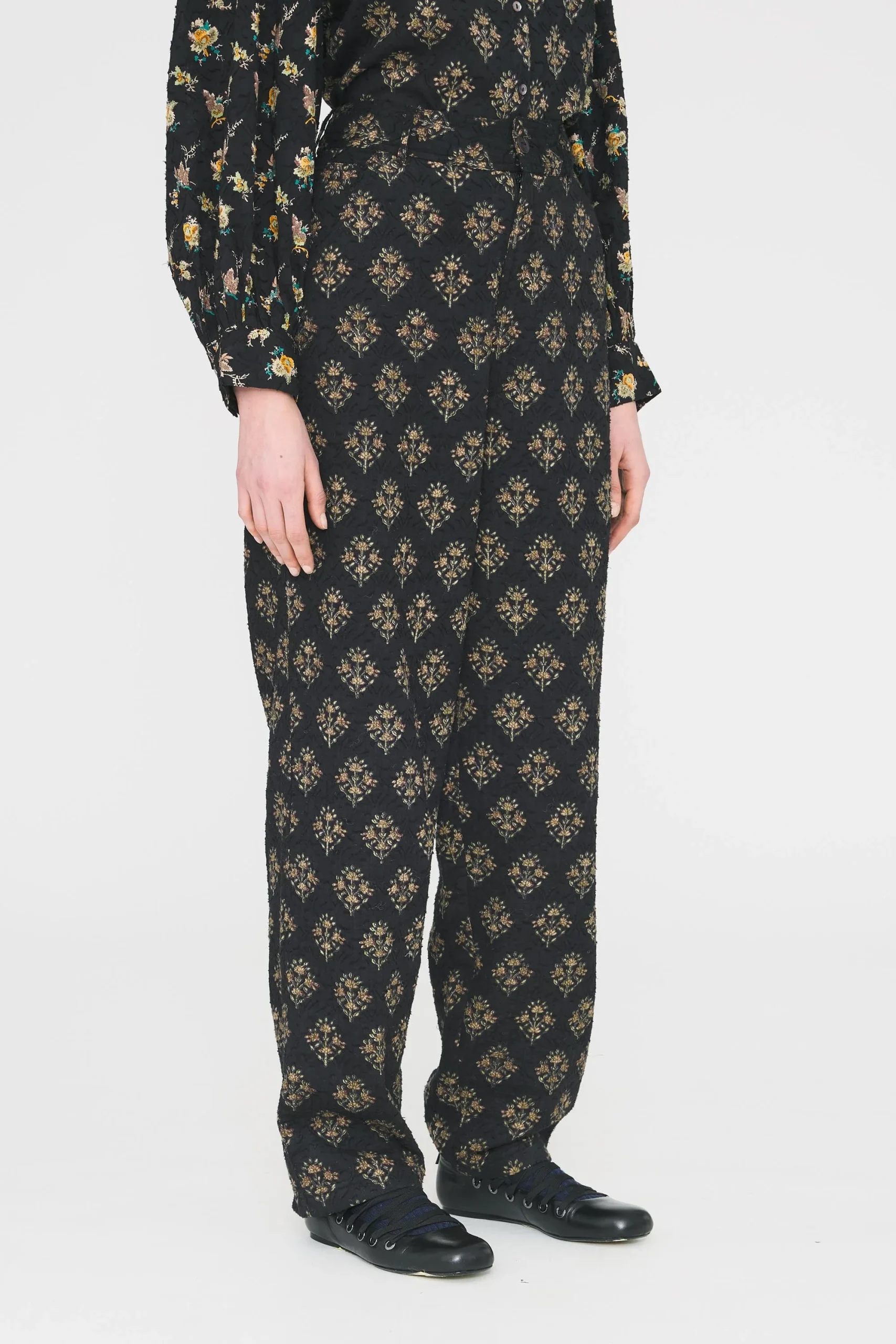 Pantalon en jacquard de coton quilté et surpiqué. Doublure en coton.