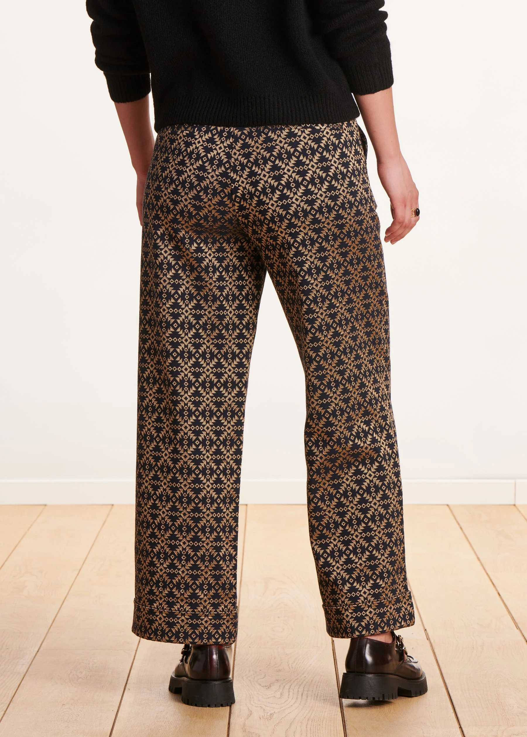– Pantalon droit en jacquard longueur 7/8ème