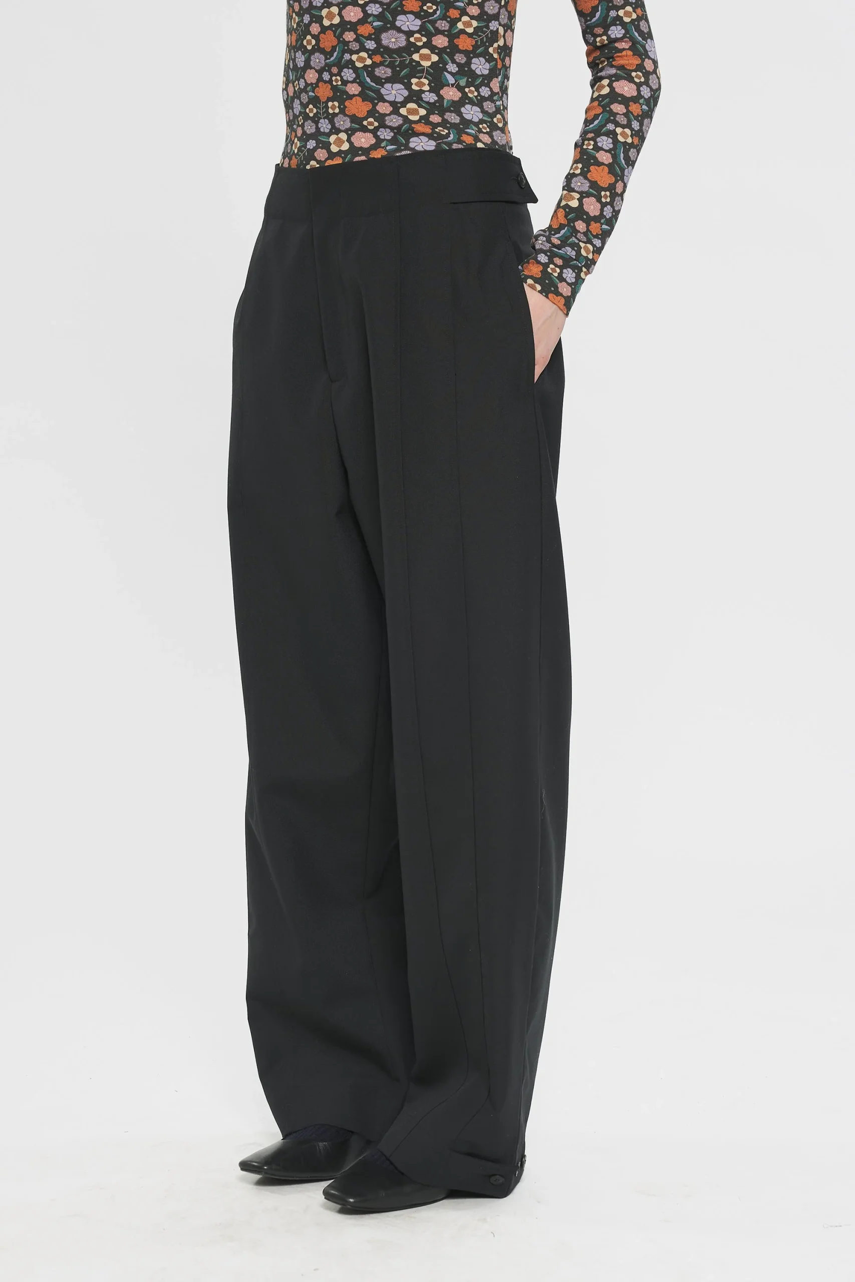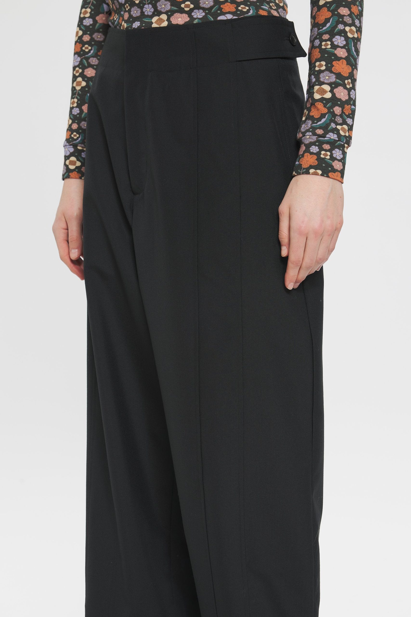 Pantalon en laine. Fabrication Italienne. Coupe droite. Fermeture avec un bouton et un zip.