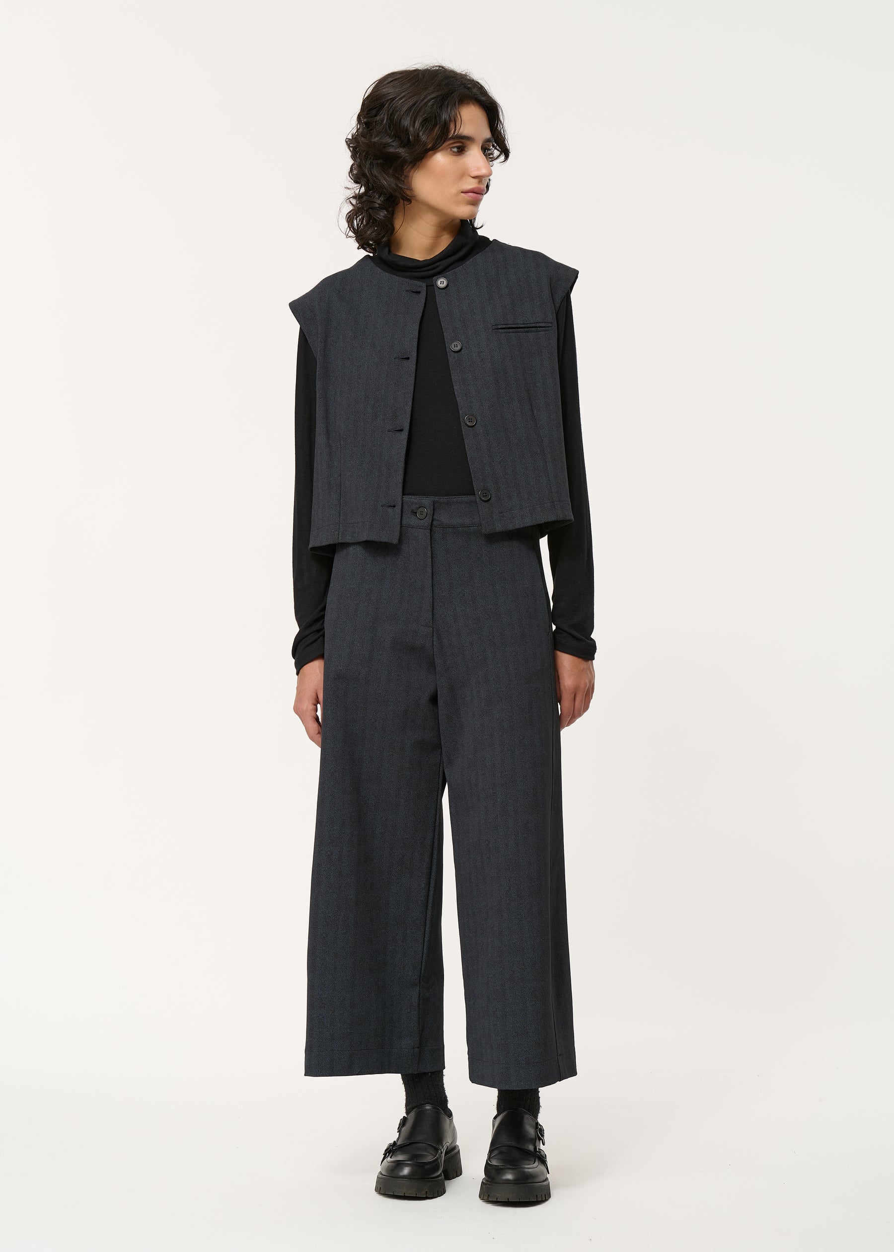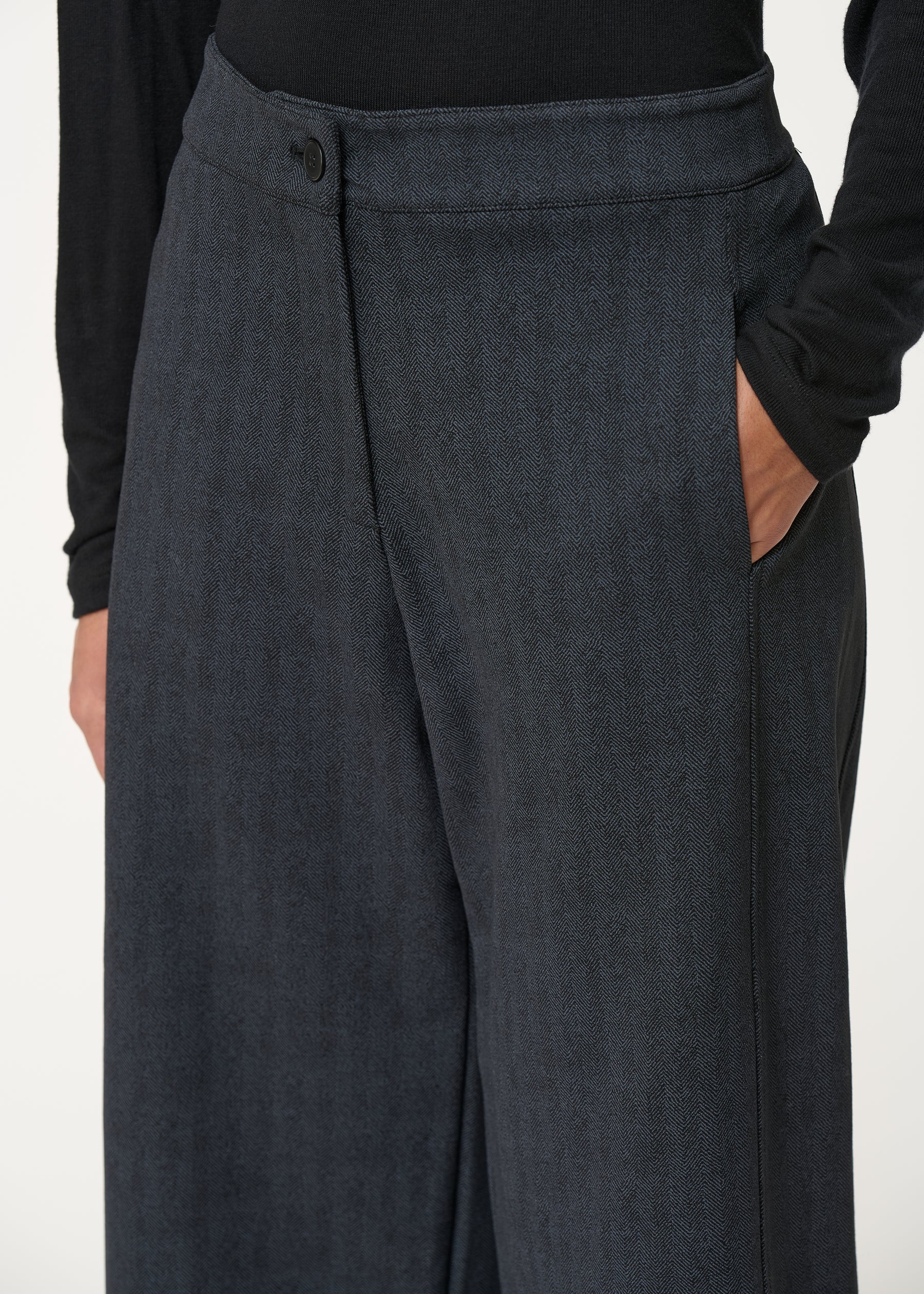 – Coupe légèrement arrondie, empiècement sur le côté de la jambe
