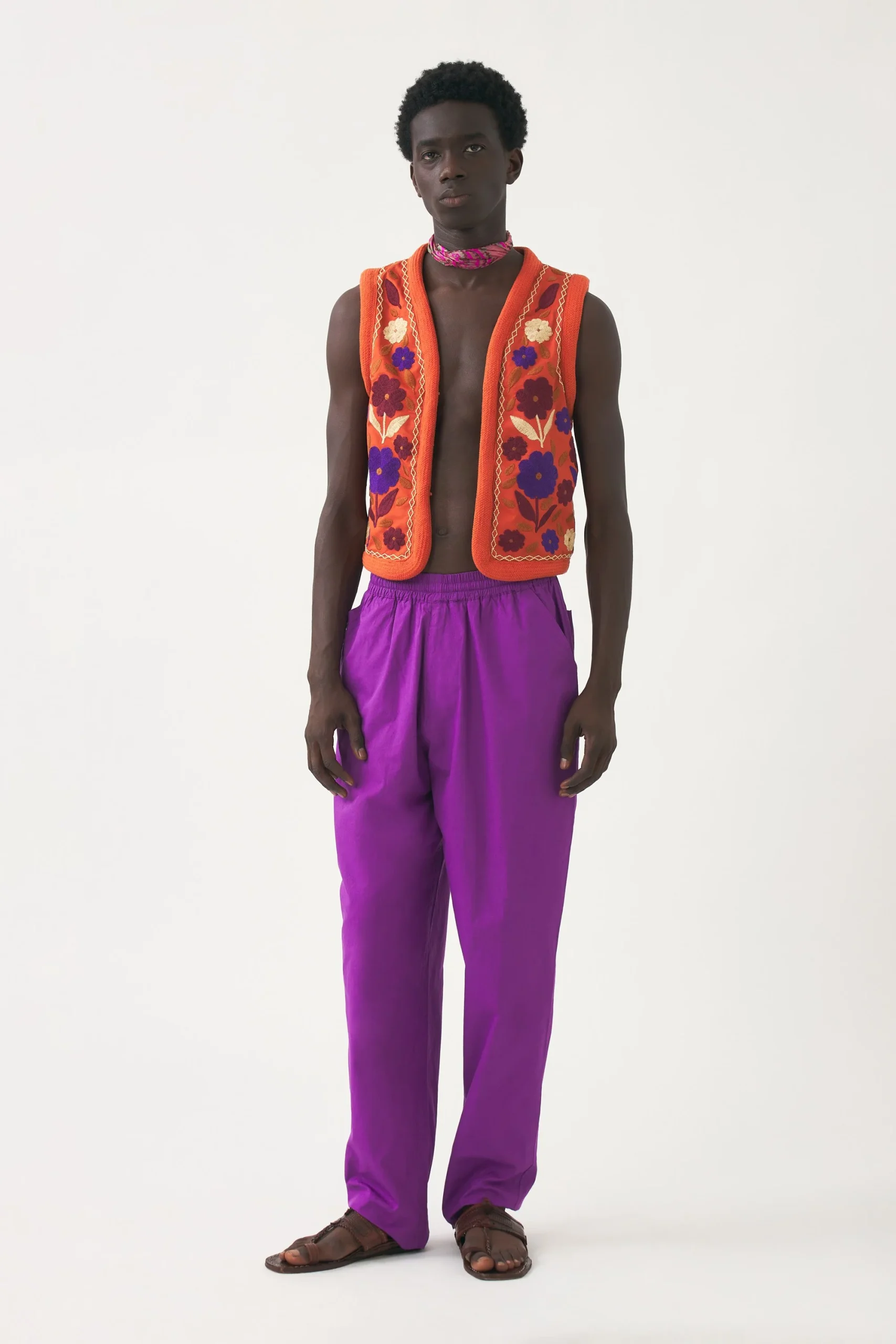 Pantalon en popeline de coton. Ceinture élastique à la taille. Deux poches latérales.