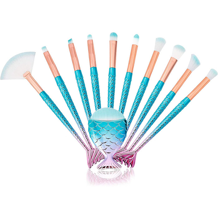 Ces Pinceaux Maquillage Sirène, de très haute qualité vous permettent d’appliquer chaque jour avec précision votre maquillage. L’ensemble se compose de 11 pinceaux incluant notamment un pinceau fard à paupières, une brosse à sourcils, un pinceau à lèvres, une brosse à fard à joue, ces pinceaux seront parfaits pour ombrer, maquiller et mélanger les produits.