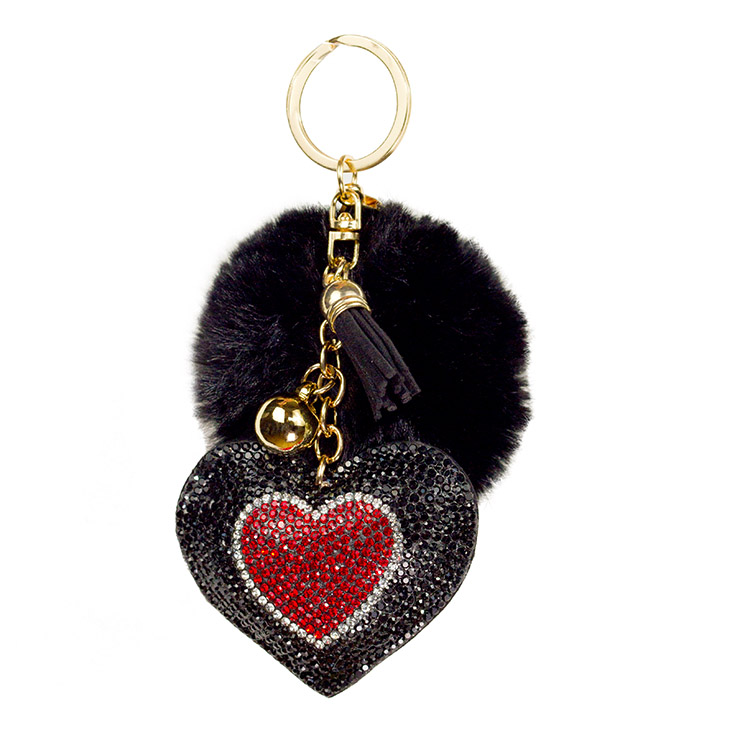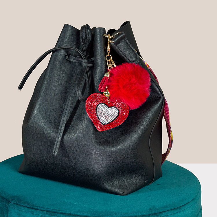 Porte-clé Cœur Strass et Pompon : Une Jolie Preuve d’Amour!
