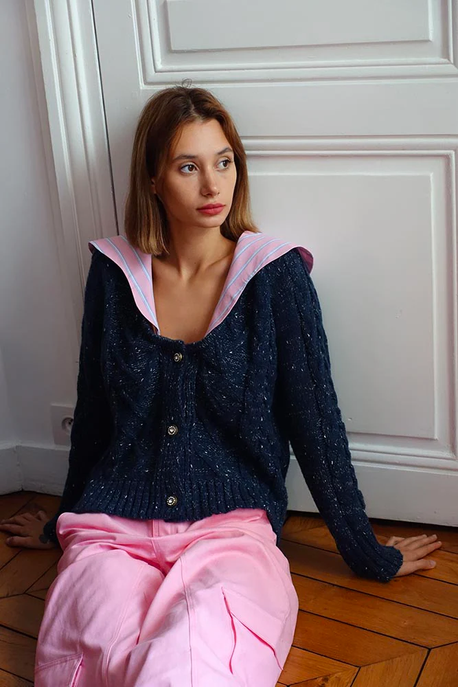 Le pull col chemise Philipinnes Marine allie élégance et originalité avec son design unique. Ce modèle se distingue par son col V agrémenté d’un col chemise amovible aux rayures claires, apportant une touche moderne à sa couleur marine intemporelle.