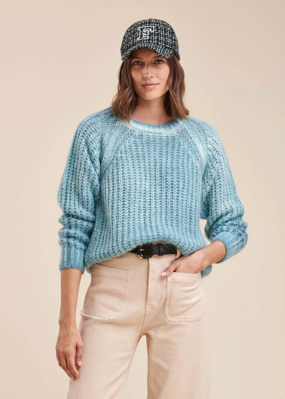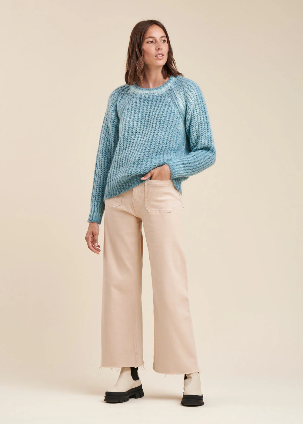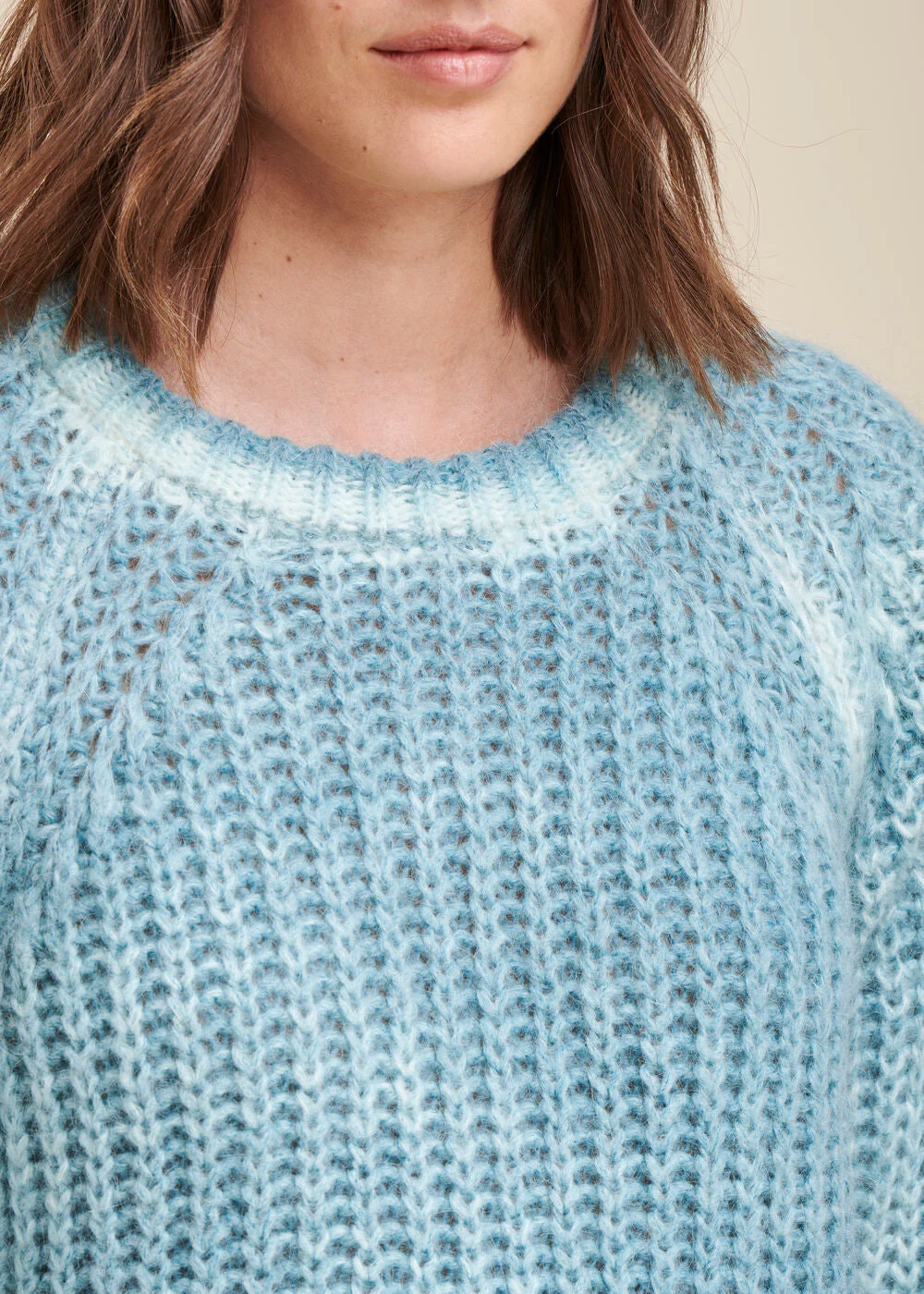 Pull manches longues, emmanchures raglan, encolure ronde. Ce pull est tricoté dans une maille effet teinture à froid. Le dégradé du coloris est aléatoire et caractéristique d’une teinture à froid. Chaque produit est unique.