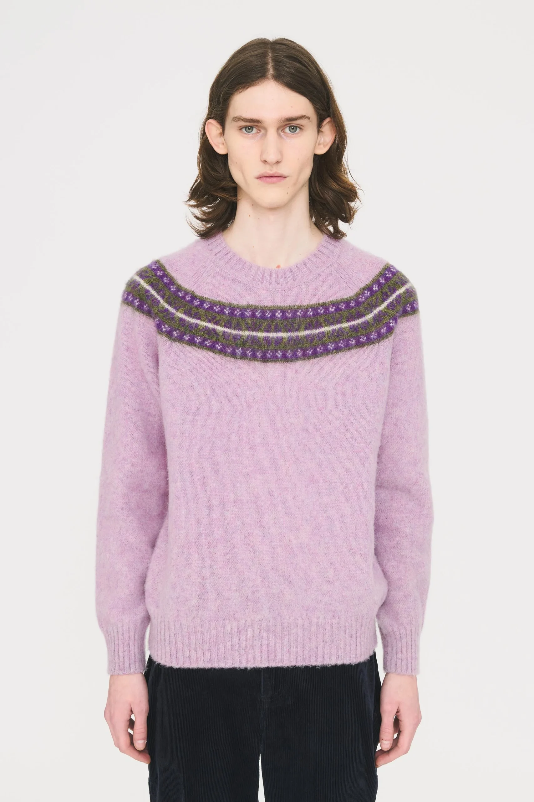 Cette capsule en pure laine Shetland a été conçue avec la maison McGeorge, une maison historique qui tricote ce fil depuis 1881. La maille est d’une qualité incomparable. Chaude, elle devient de plus en plus douce avec le temps. Ici, on retrouve un motif traditionnel Fair isle : indémodable.