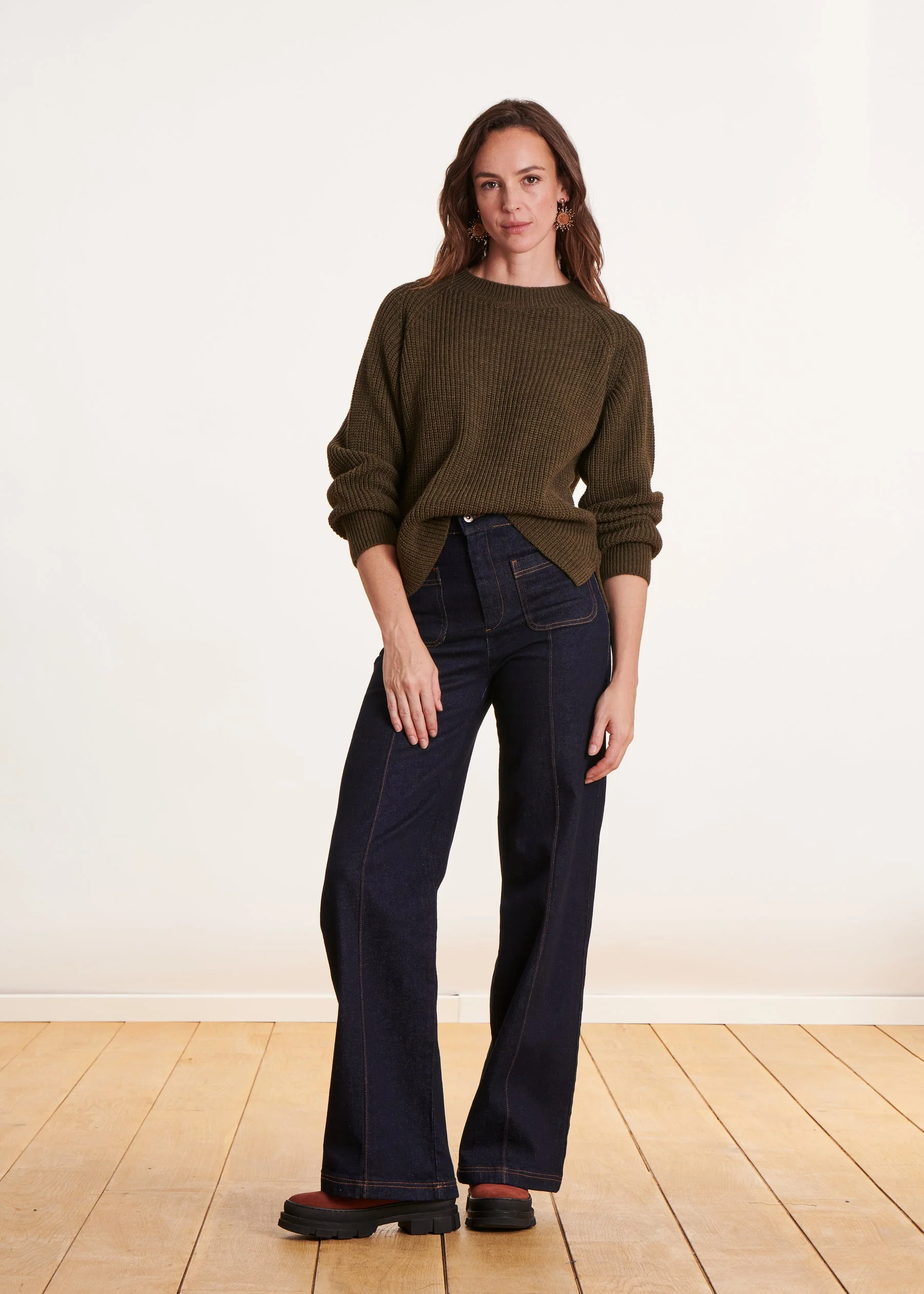 – Pull en maille côtes perlées