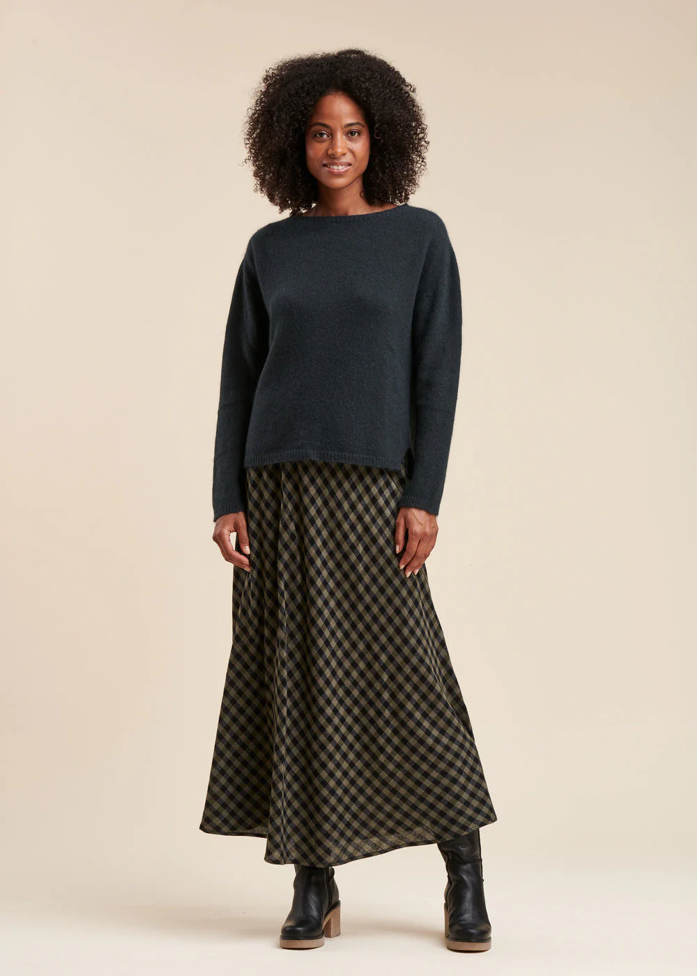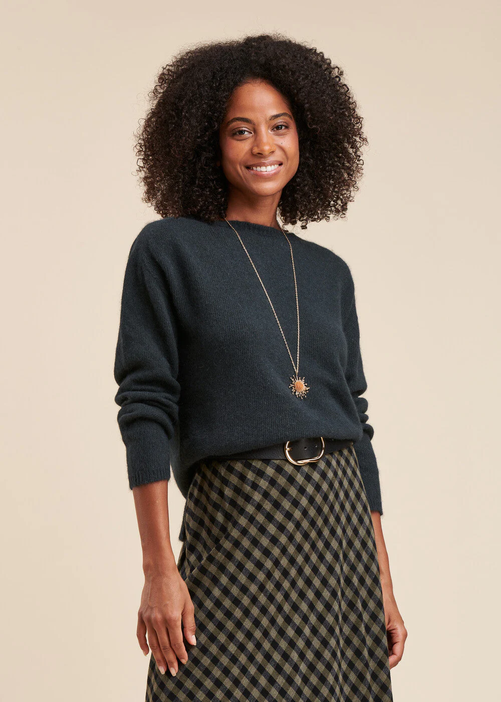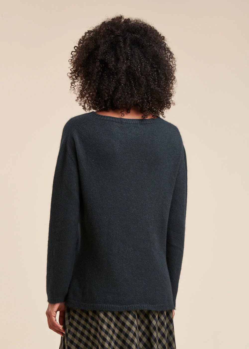 Pull maille angora, encolure ronde, coupe droite, finitions bord-côte.