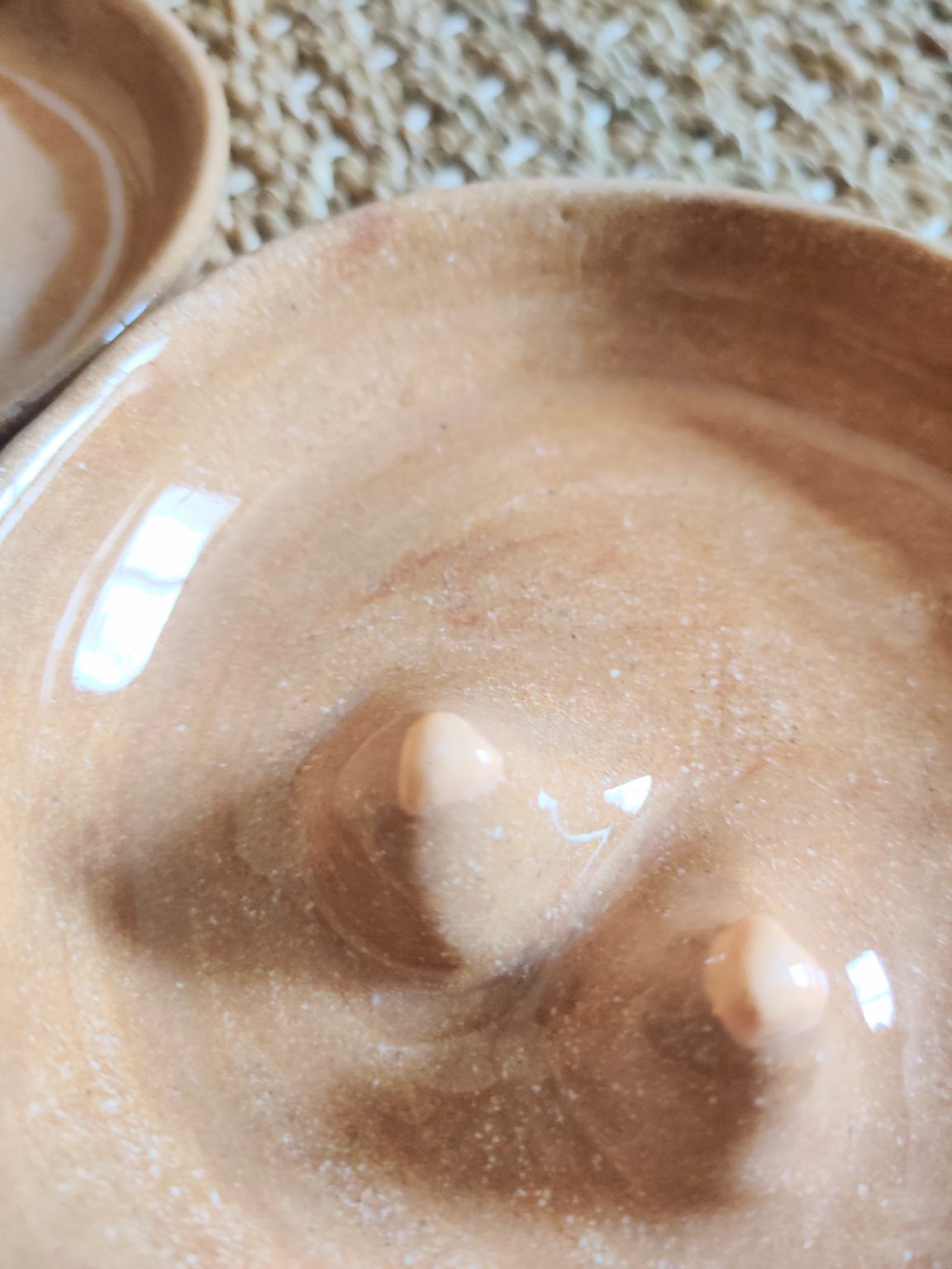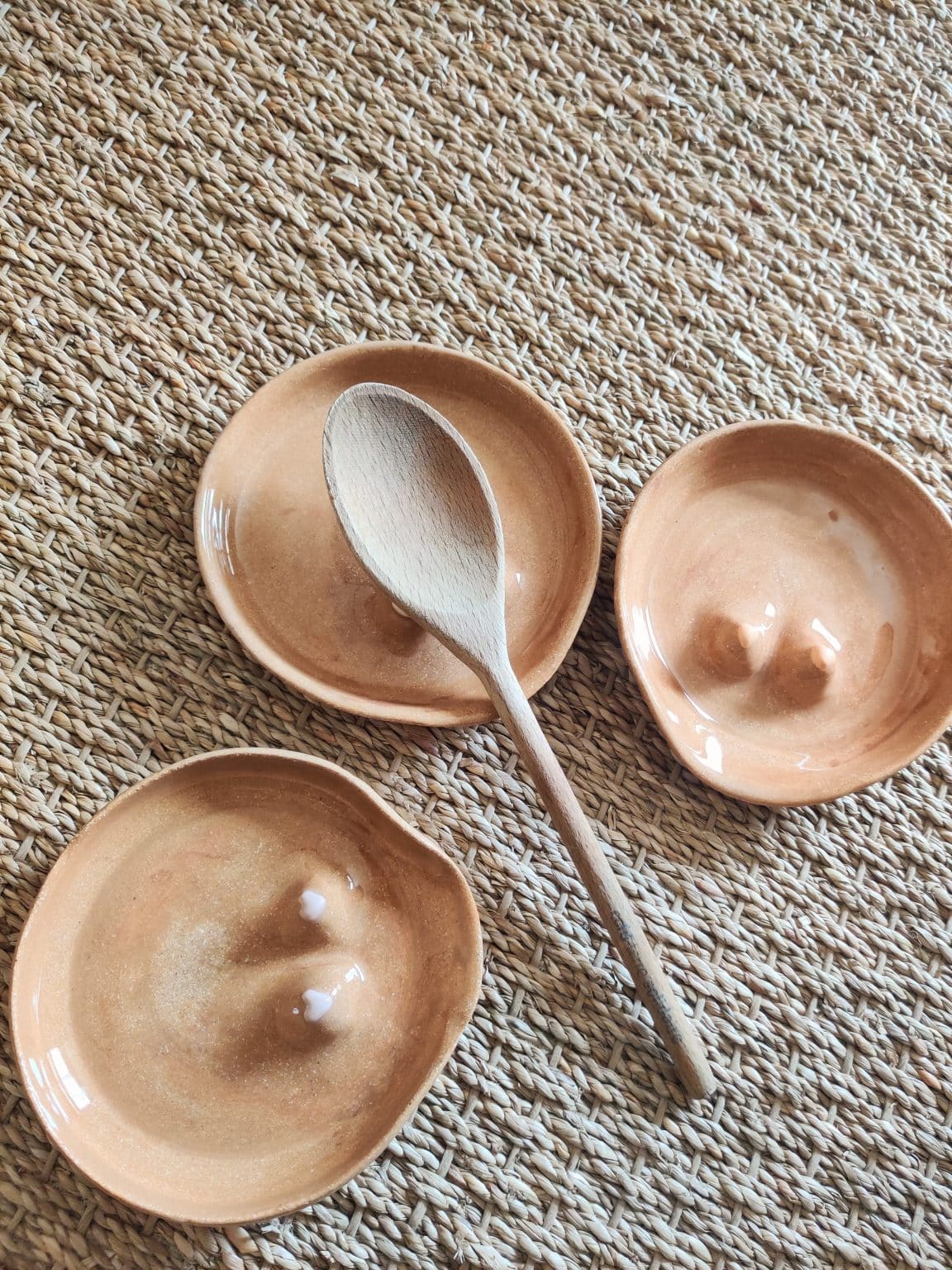 Les pièces étant entièrement réalisées à la main, je ne peux garantir une similitude parfaite avec le produit photographié. L’acheteur doit accepter qu’il puisse y avoir de légères différences de couleur, de mouchetures, de forme et/ou de taille, ainsi que de légères fissures, tant qu’elles ne fragilisent pas la pièce.
