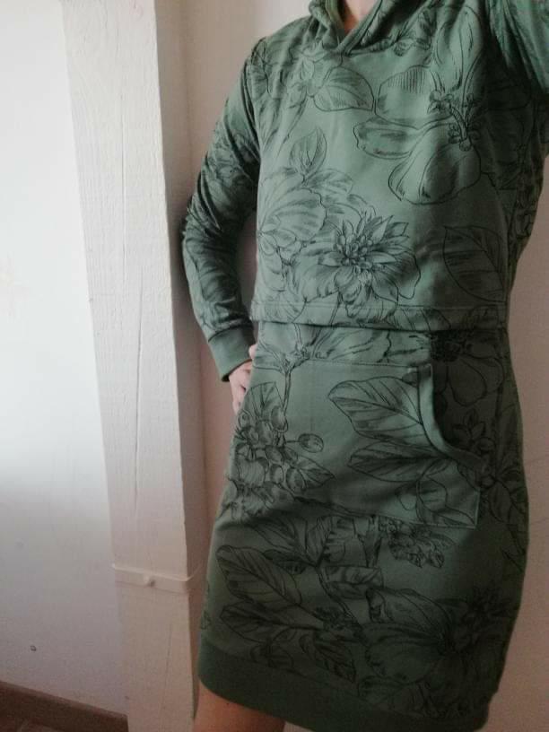 Robe à capuche allaitement-compatible. Cette robe sweatshirt à capuche est confortable et féminine.