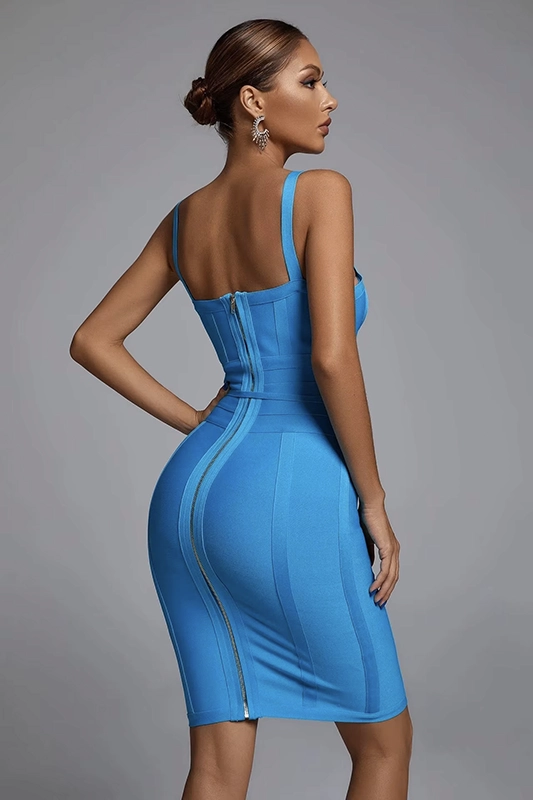 Un turquoise lumineux qui évoque les plus belles destinations de vacances. Cette robe bandage courte est la définition du look cocktail réussi. Son décolleté en cœur et ses larges bretelles subliment la poitrine tout en assurant un maintien parfait. Le détail qui change tout : sa ceinture assortie à nouer, qui cintre la taille pour un effet sablier irrésistible. Confectionnée dans notre tissu bandage iconique, elle sculpte et lisse vos courbes pour une confiance totale.