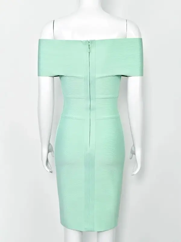 Un vert menthe frais et lumineux. Cette robe bandage midi est une merveille de design intemporel. Son magnifique col Bardot drapé dégage les épaules avec une grâce infinie, créant un port de tête digne des plus grandes icônes. Confectionnée dans notre tissu bandage signature, elle sculpte la silhouette pour un effet sirène incroyablement flatteur, alliant maintien parfait et confort absolu.