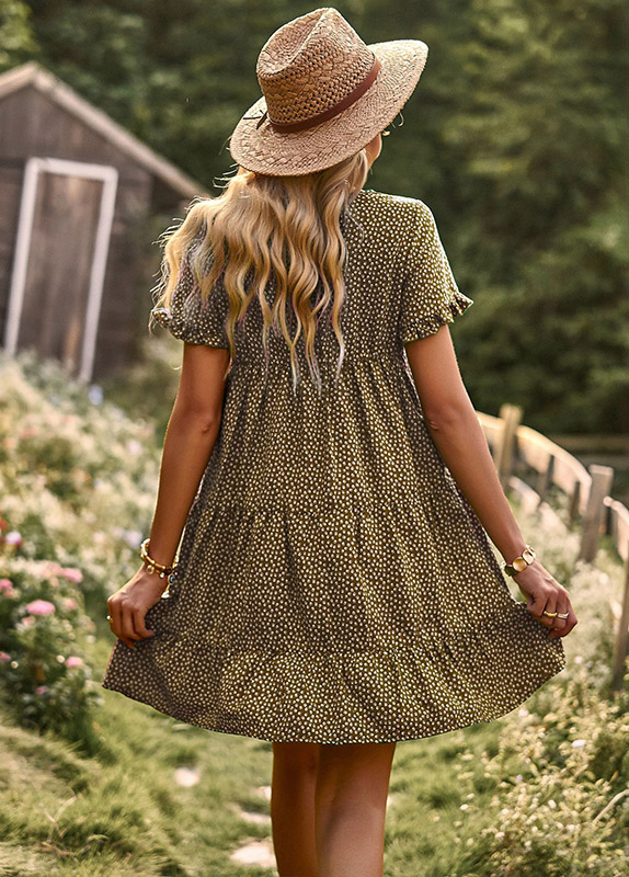 Une robe légère et Champêtre pour un confort optimale. Une coupe trapèze et ample mais un brin sexy. Cette robe bohème babydoll imprimée marron est particulièrement féminine, confortable et très séduisante. Elle met en valeur vos plus beaux atouts, notamment les jambes.