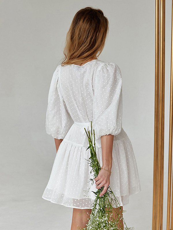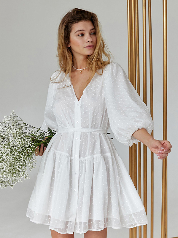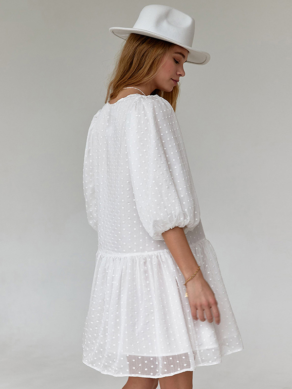 Cette robe bohème chic blanche ample est élégante et confortable. Sa coupe trapèze baby Doll flatte les formes de toutes les femmes, tandis que les manches 3/4 lanternes et le col en v ajoutent une touche d’élégance à n’importe quelle tenue.