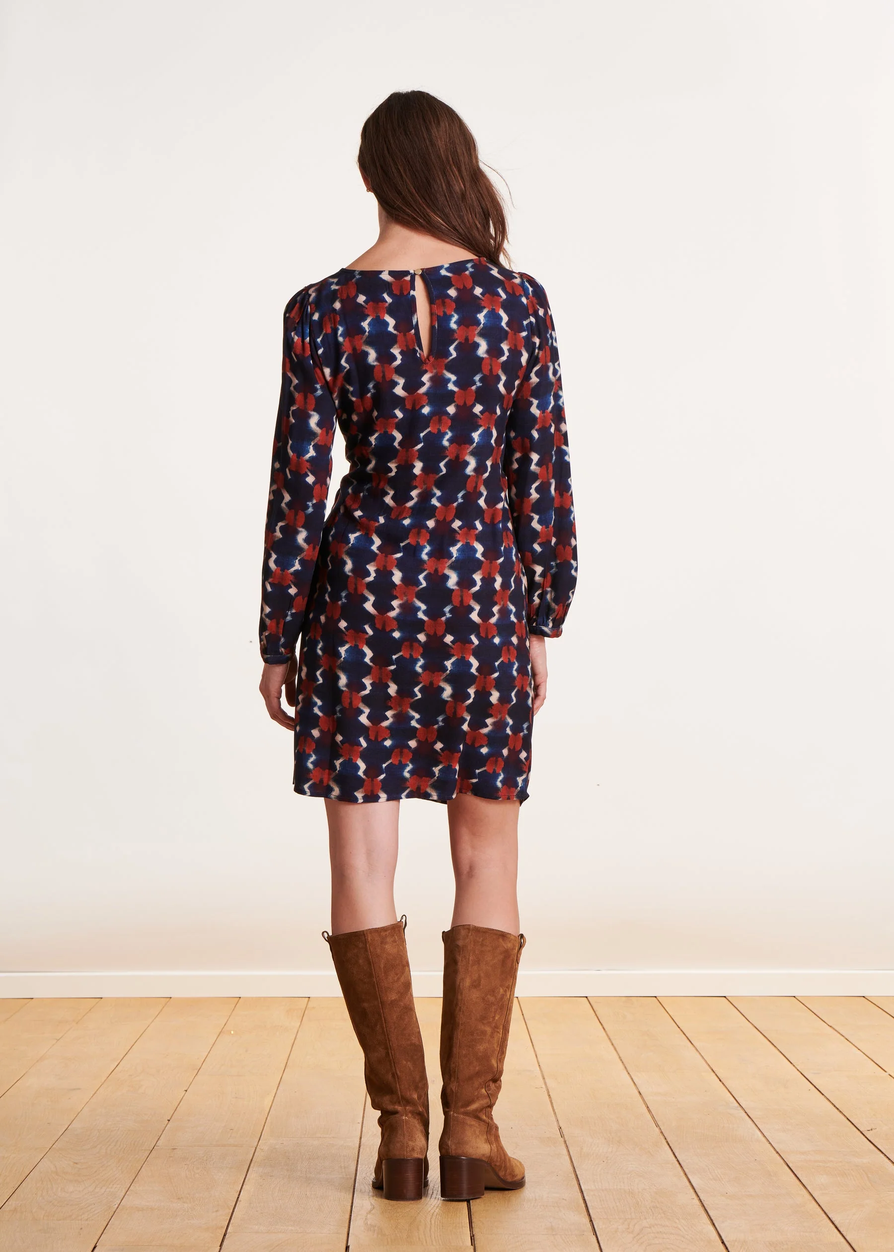 – Robe courte cintrée en viscose Ecovero imprimé ethnique