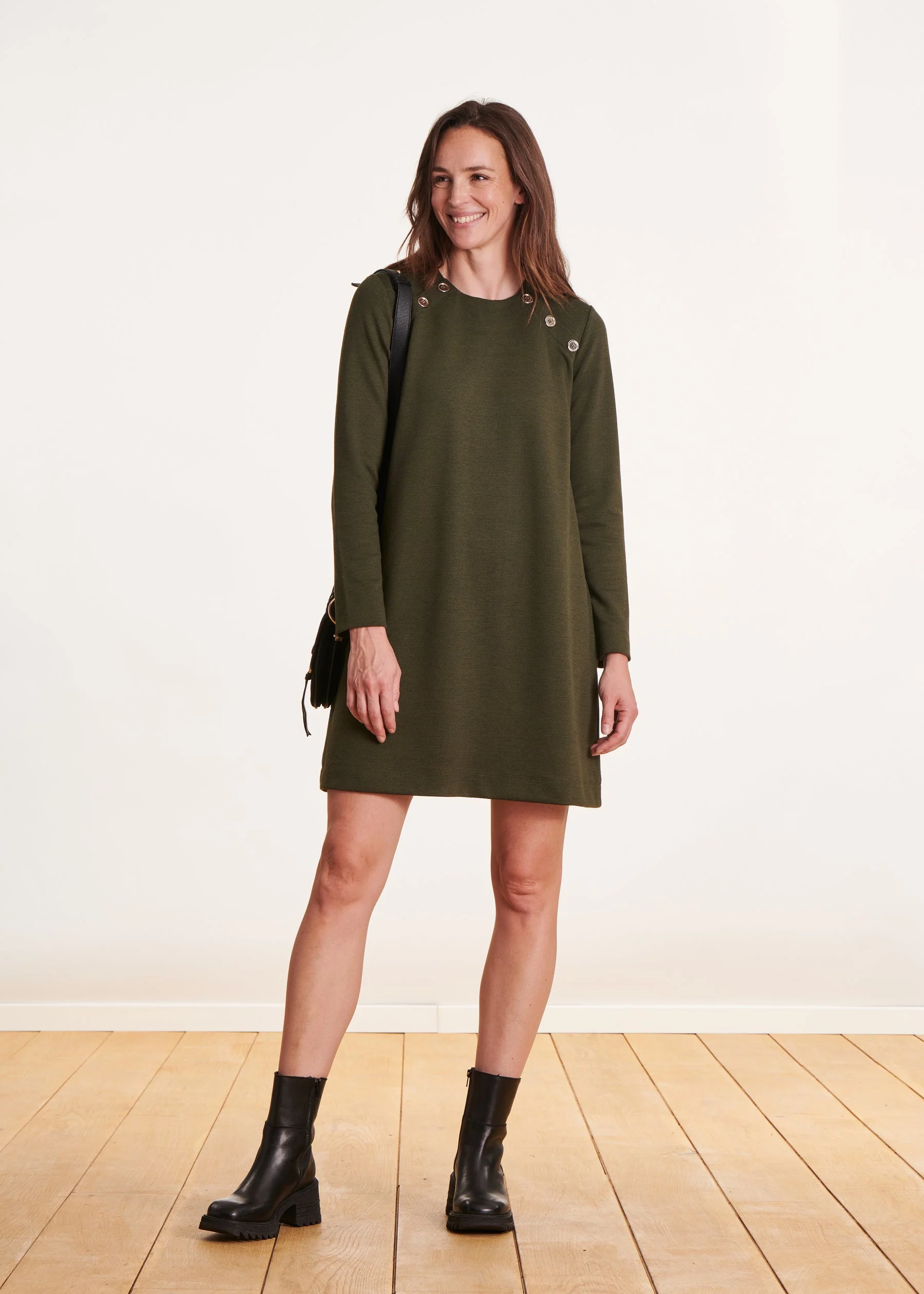 – Robe courte légèrement évasée en base