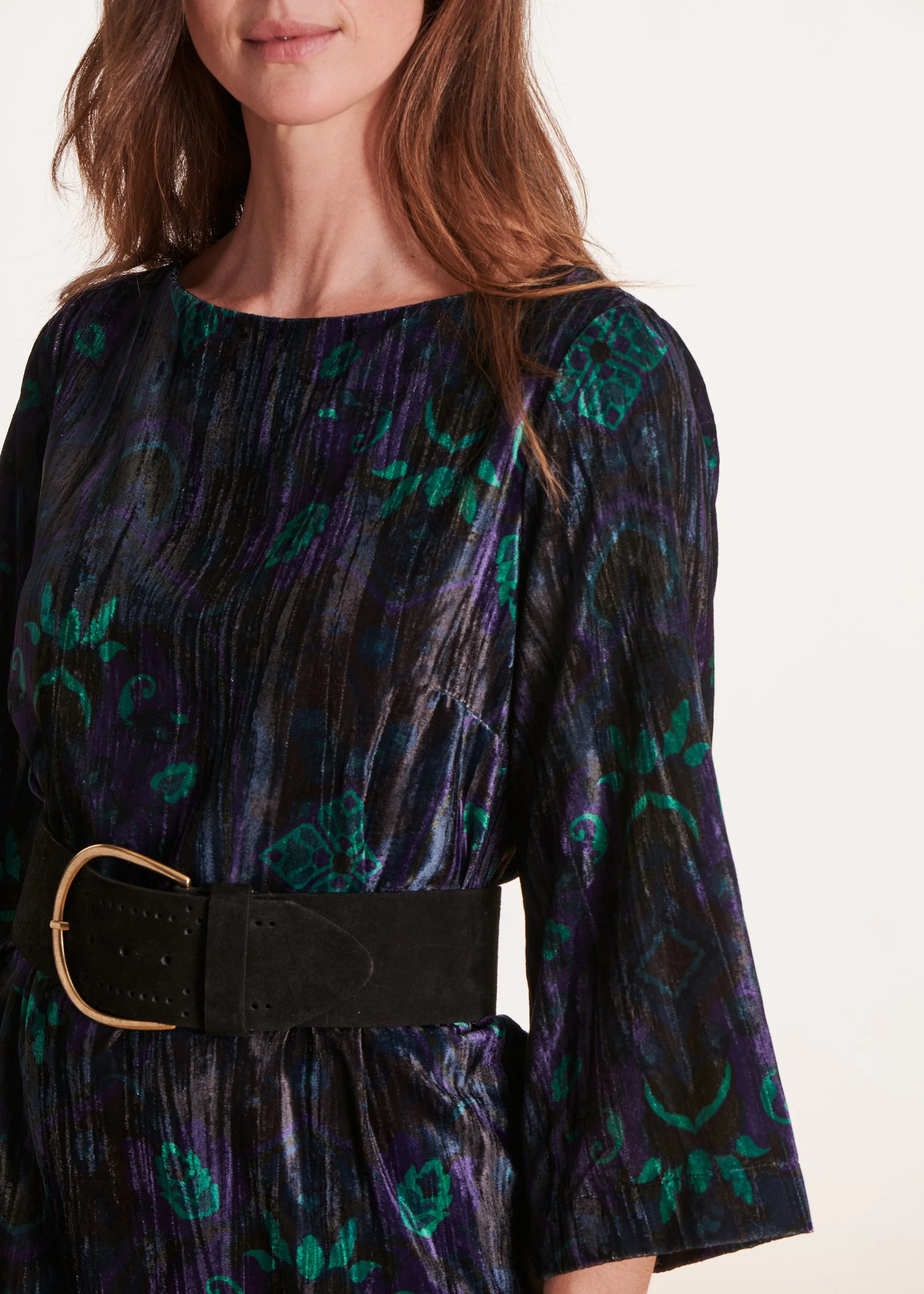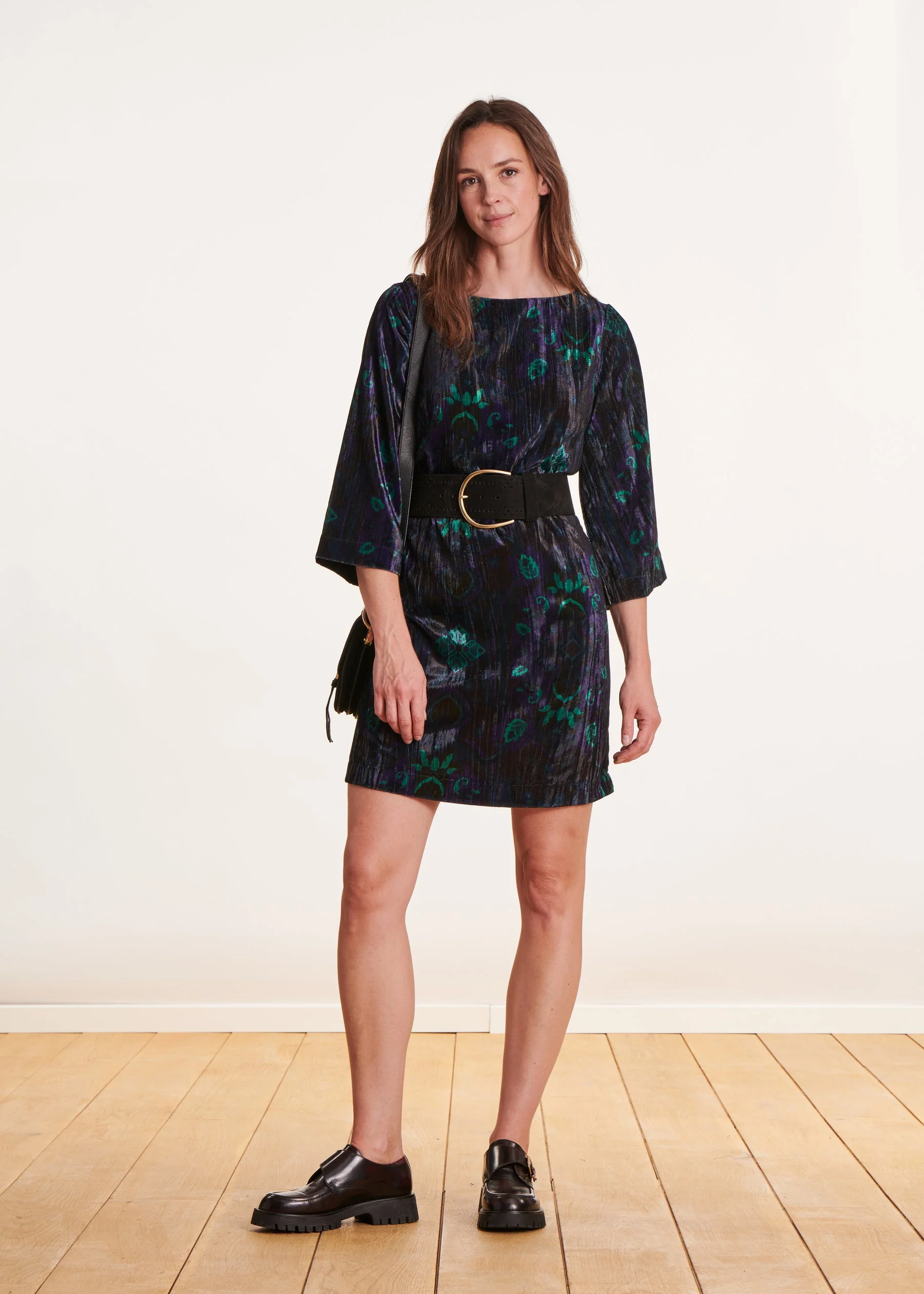 – Robe courte de cérémonie en velours à imprimé cachemire