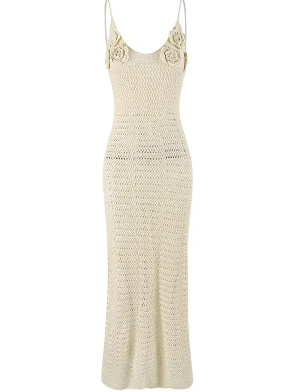 Robe Crochet Longue Blanche Bohème à Fleurs