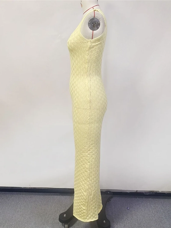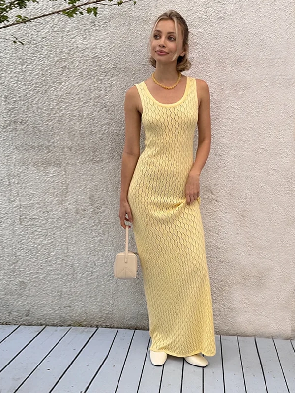Robe Crochet Longue Ajourée Jaune : Une Silhouette Épurée pour un Style Solaire