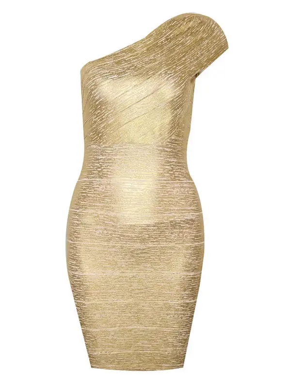 Apportez une touche de glamour à vos soirées avec cette robe de soirée courte en bandage or, conçue pour captiver tous les regards. Son design asymétrique moderne et sa finition métallisée ajoutent un éclat sophistiqué, idéal pour les événements où l’élégance et l’audace sont de mise.