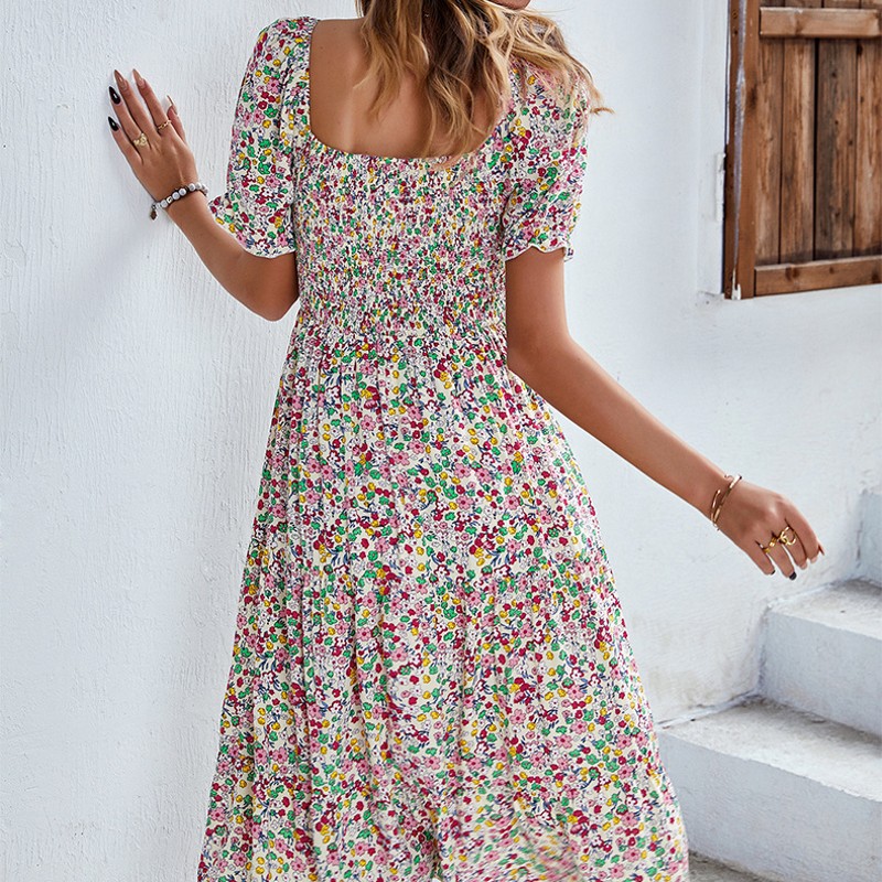 La Robe Fleurie Mi Longue est une ode à l’élégance décontractée et au style bohème. Sa couleur principale, un doux abricot, est parsemée de motifs floraux qui ajoutent une touche de romantisme à la robe. Le design mi-long, le col en V et les manches courtes créent une silhouette flatteuse, tandis que la légèreté de la robe en fait un choix idéal pour les journées chaudes d’été ou les soirées printanières.